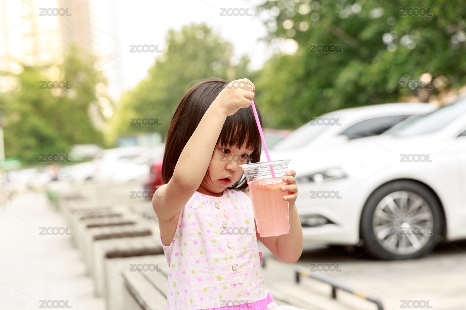 手拿一杯檸檬柚子茶的小女孩