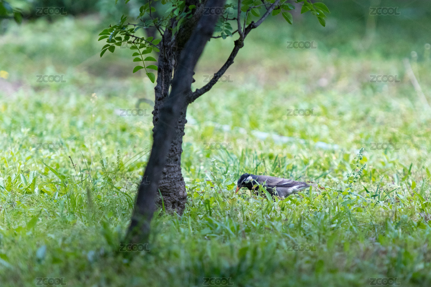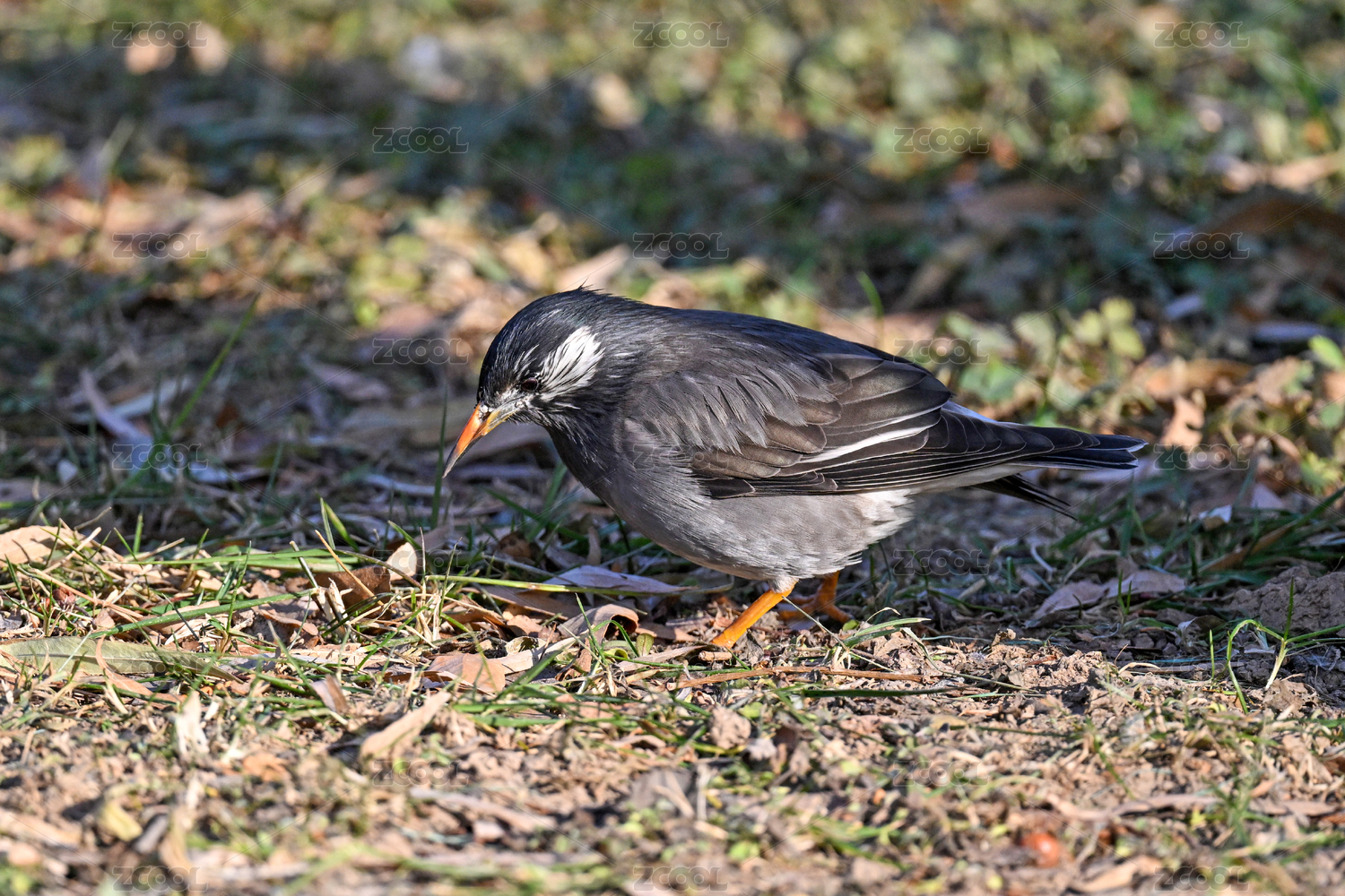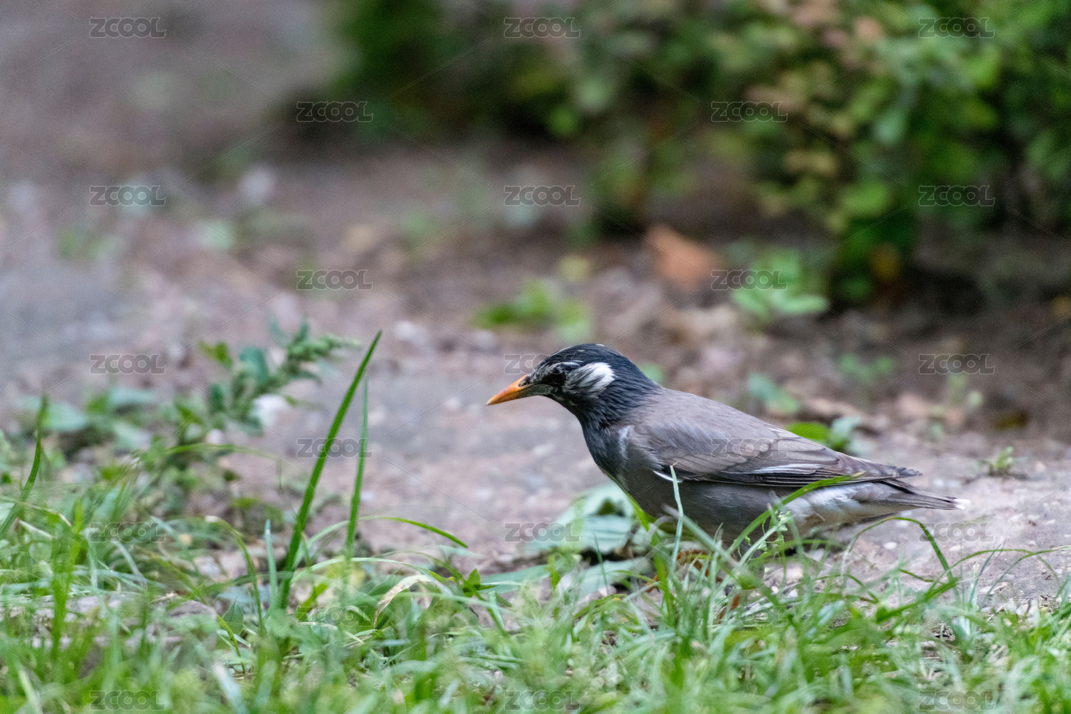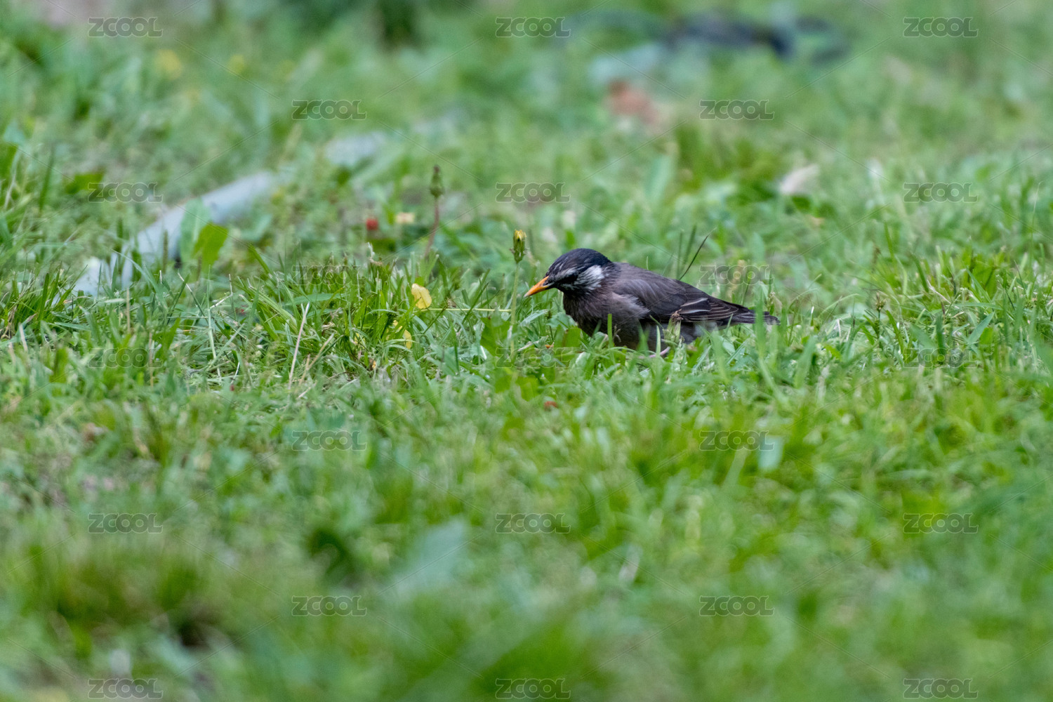 站在草地上覓食的灰椋鳥特寫