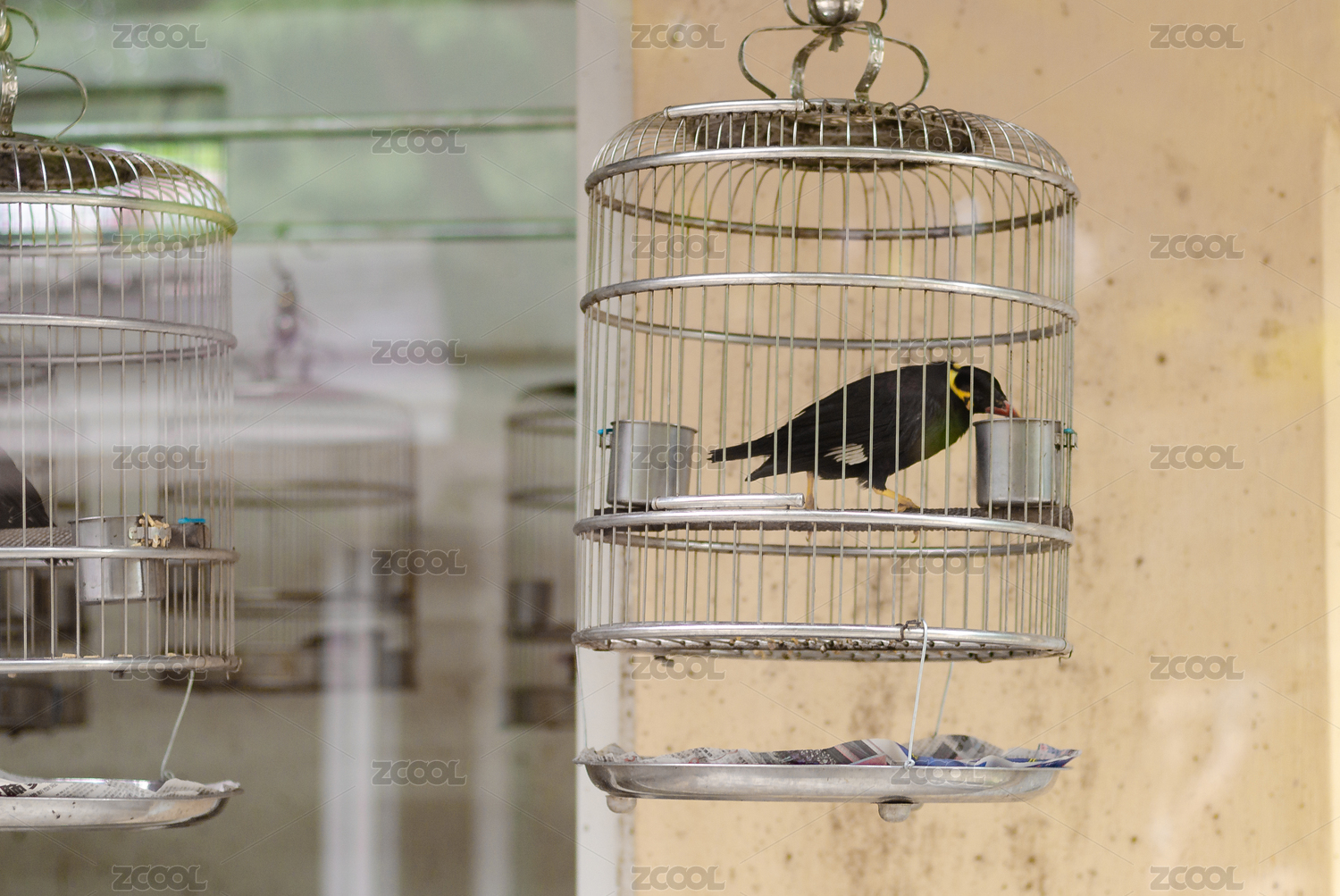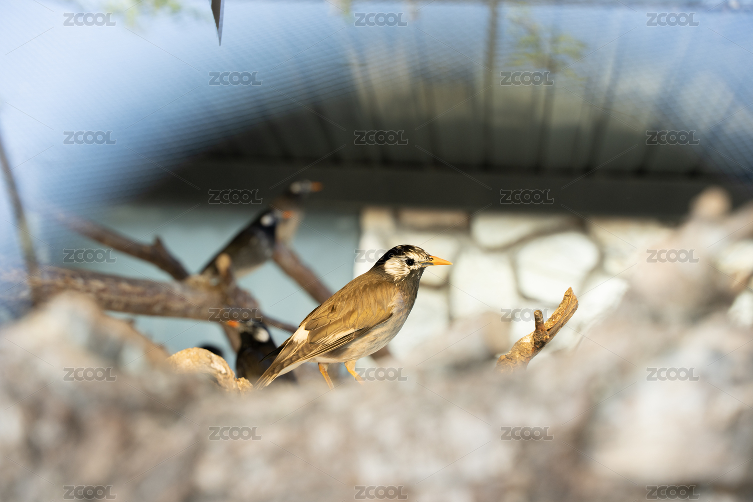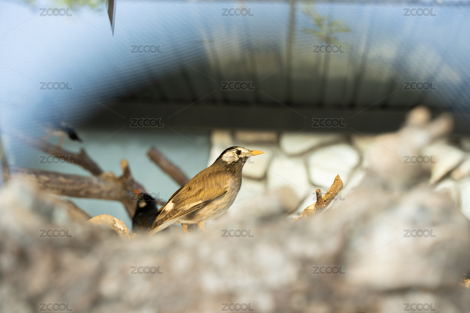 動(dòng)物園籠子中的一只灰椋鳥