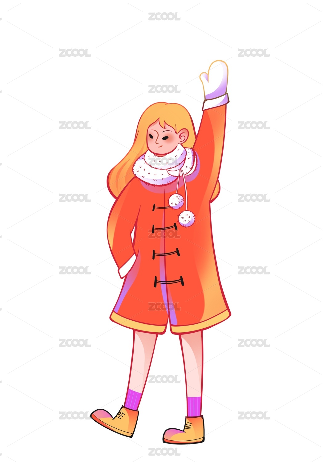 穿紅色大衣圍巾的冬日雪地漂亮女子半身人像