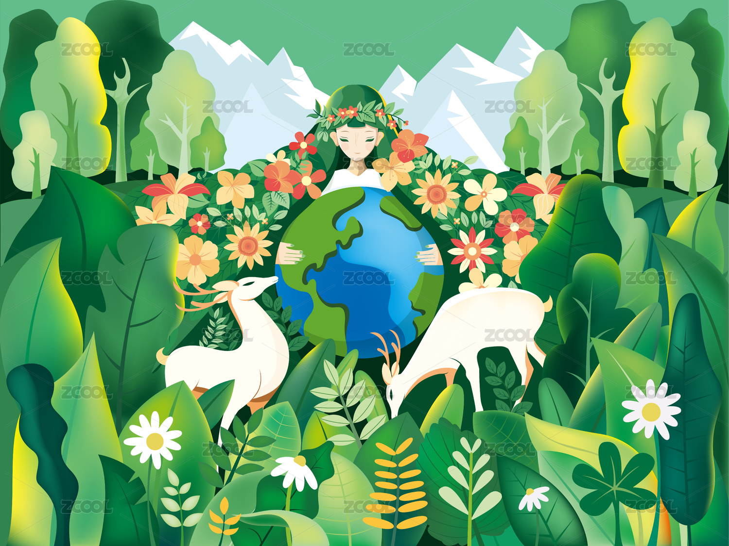 小清新綠色植樹節(jié)環(huán)保插畫