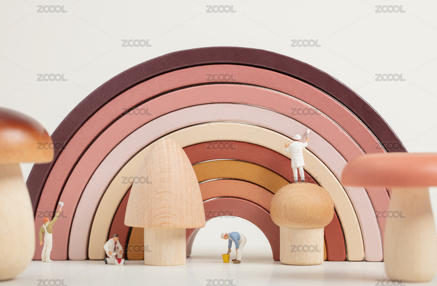 微縮創(chuàng)意暖色系彩虹積木與油漆工