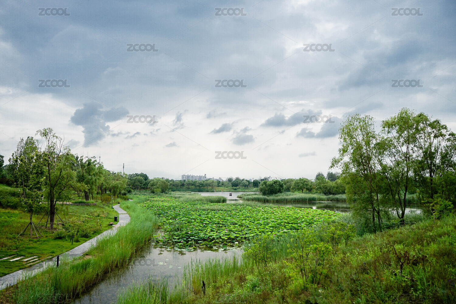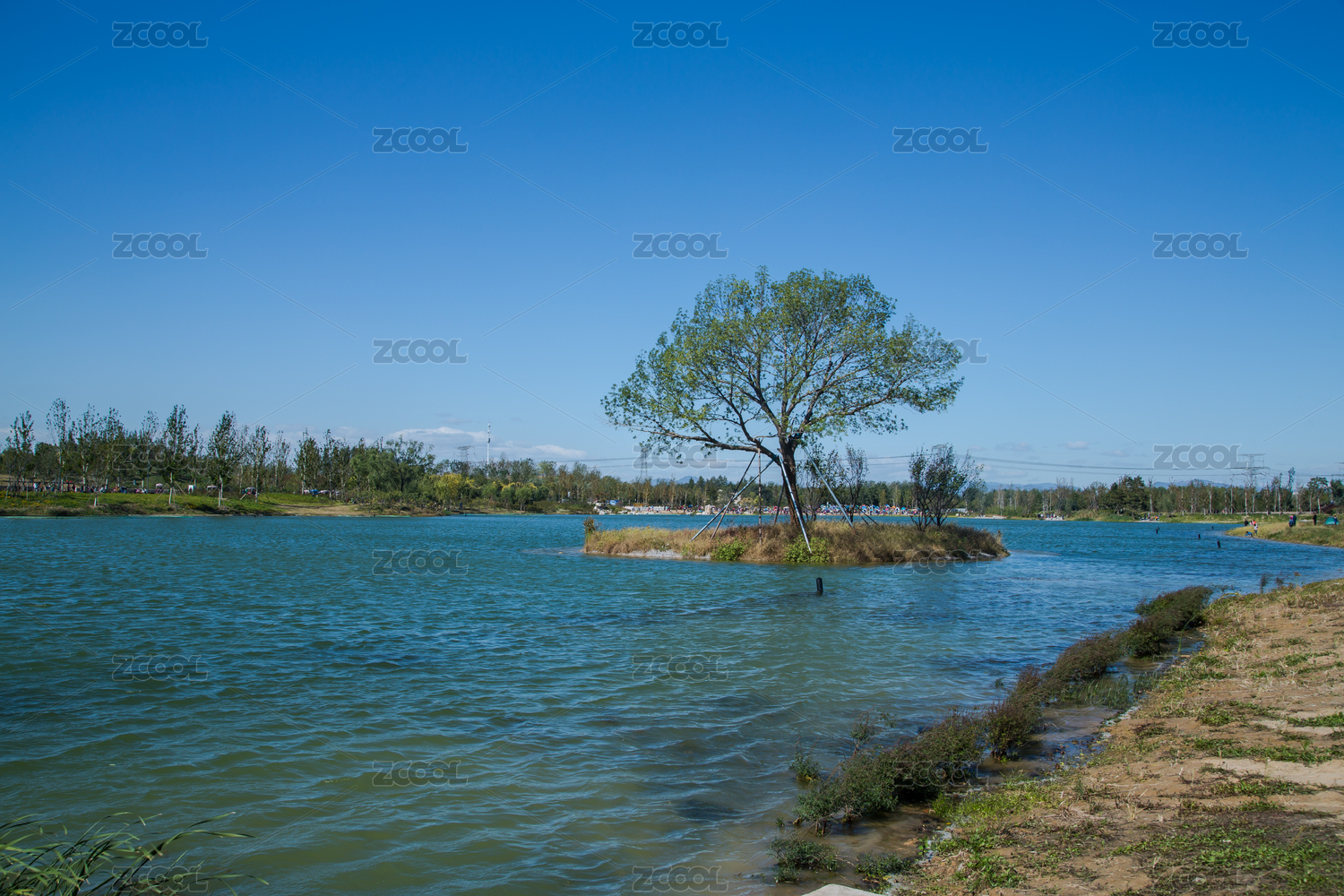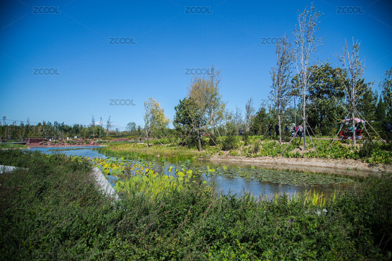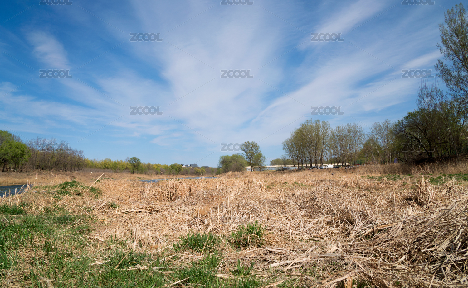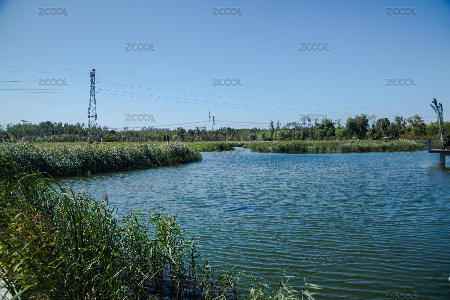 春末夏初北京溫榆河河床返青藍(lán)天白云