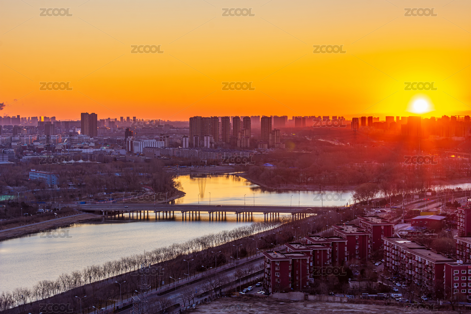 北京市通州區(qū)溫榆河上鄧家窯橋的日落