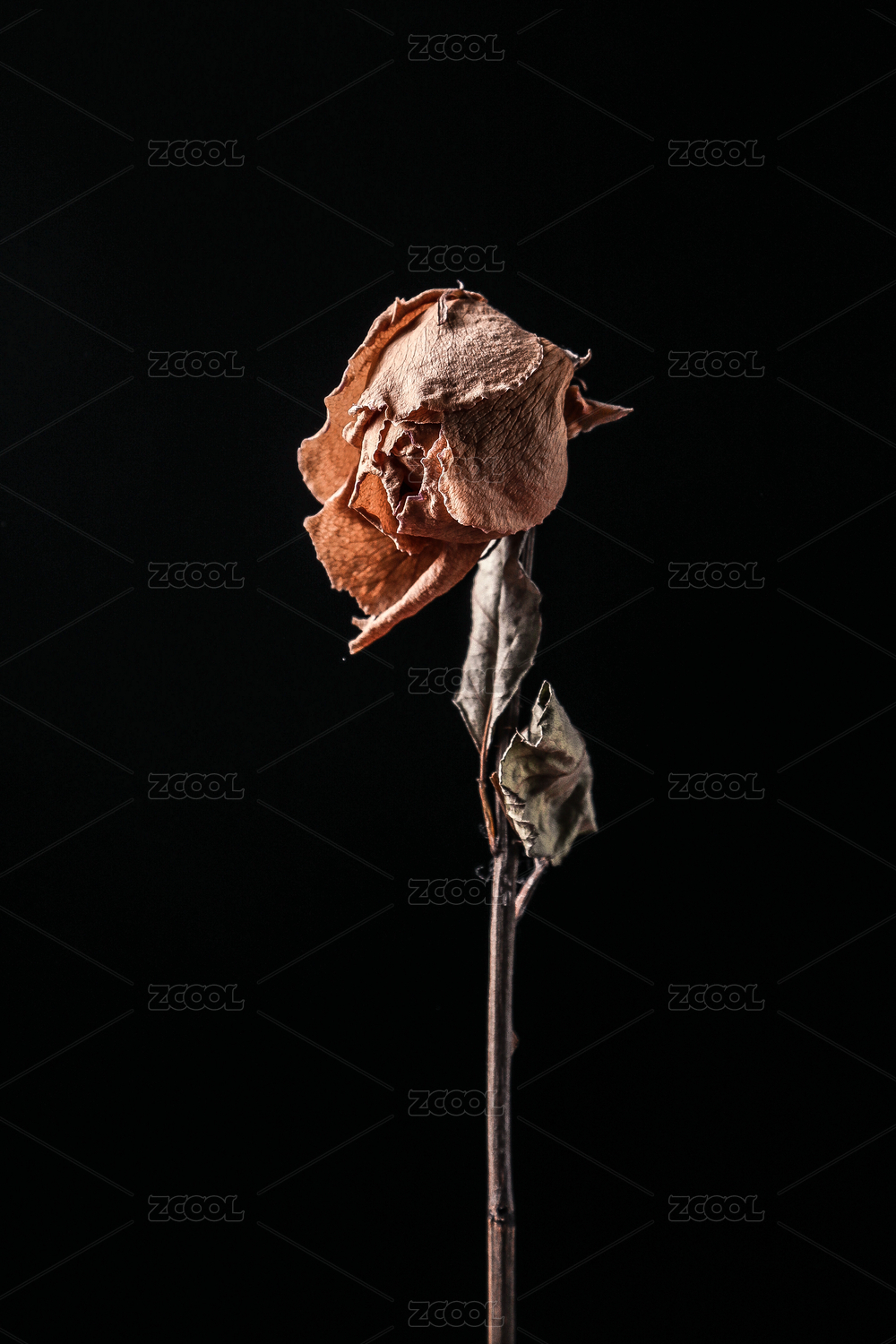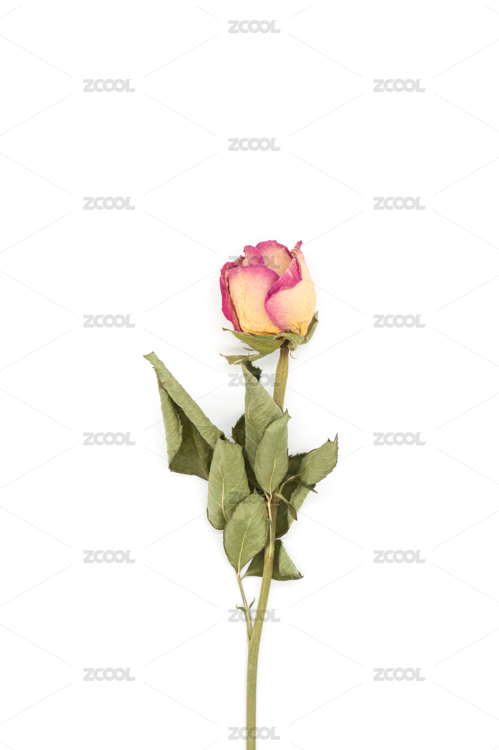 白背景一朵干花粉紅玫瑰花