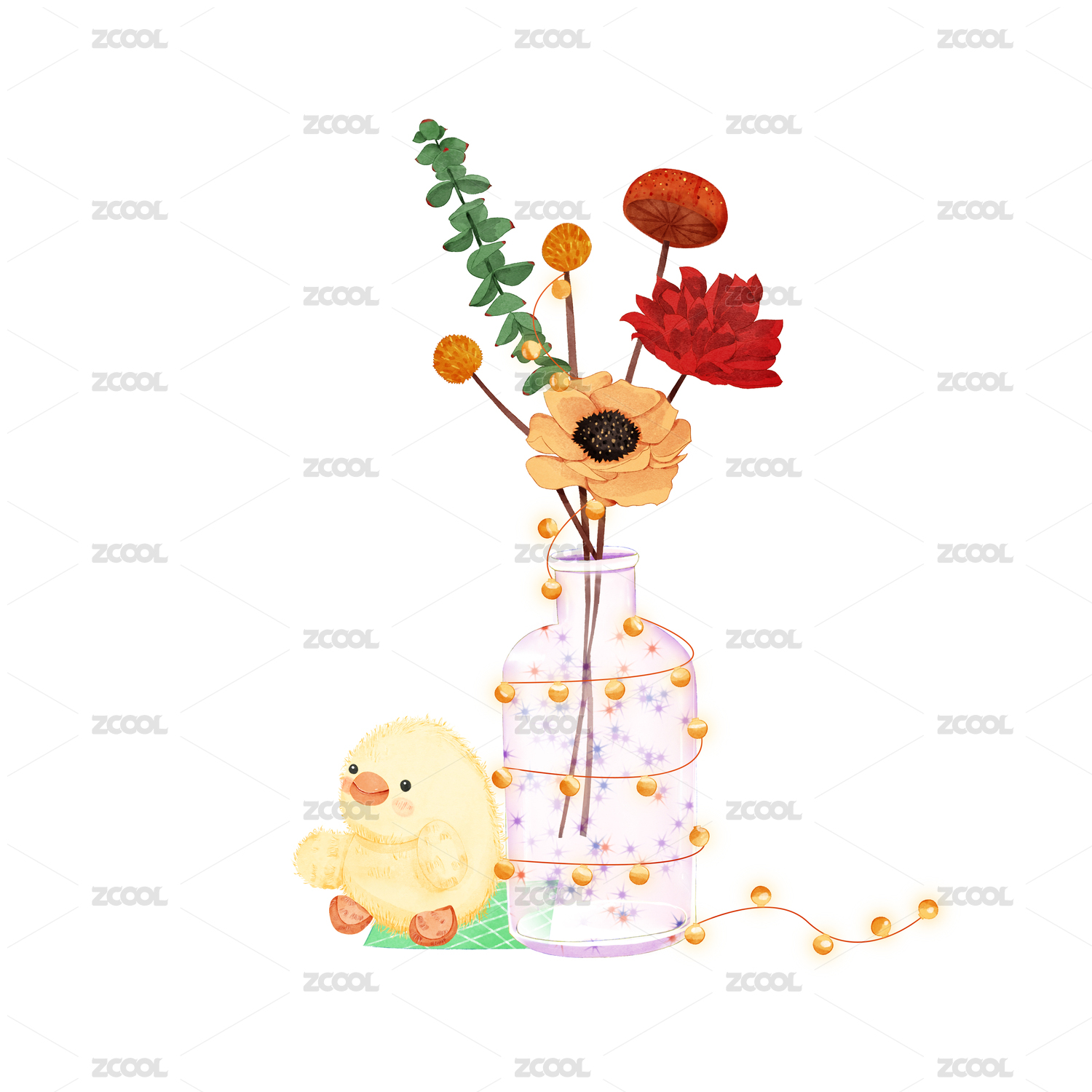 原創(chuàng)手繪小清新瓶子干花插畫