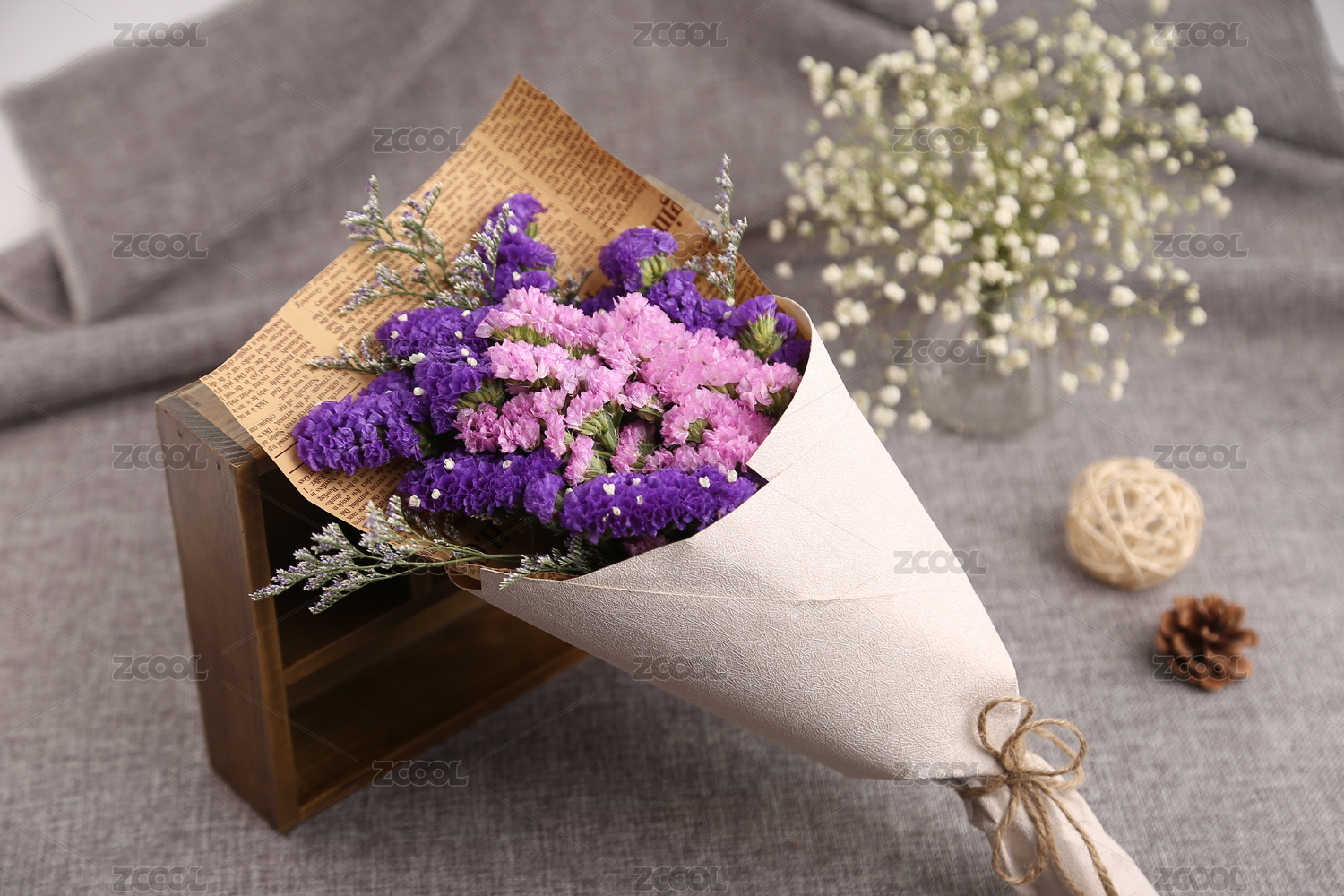 桌子上的勿忘我干花