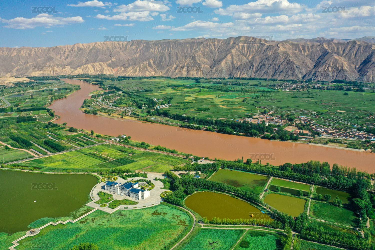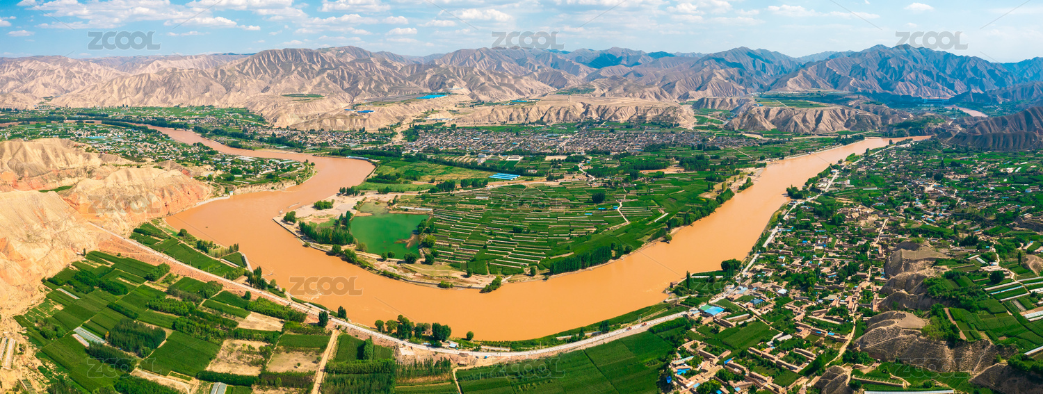 中國甘肅白銀青城古鎮(zhèn)黃河農(nóng)田景觀航拍