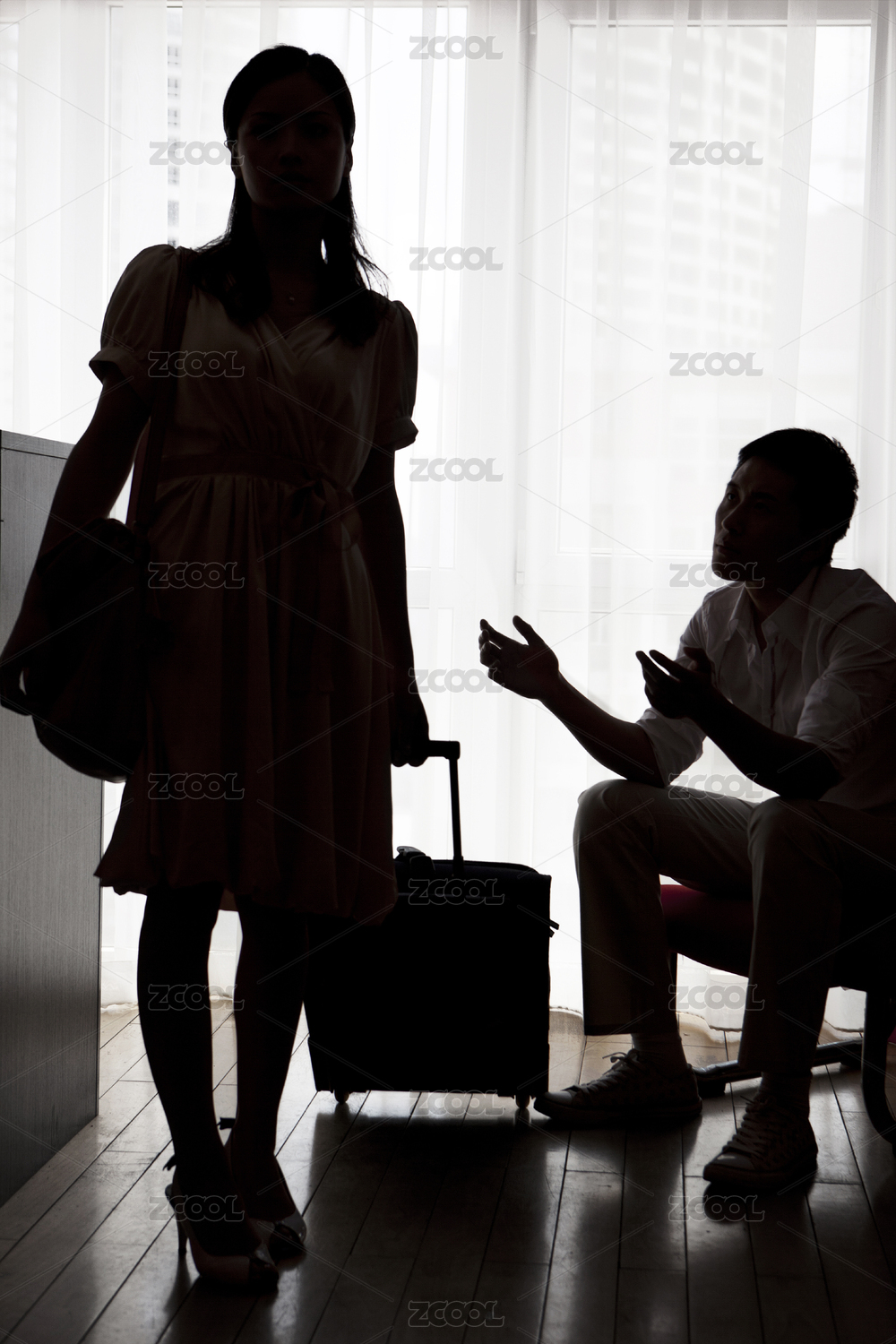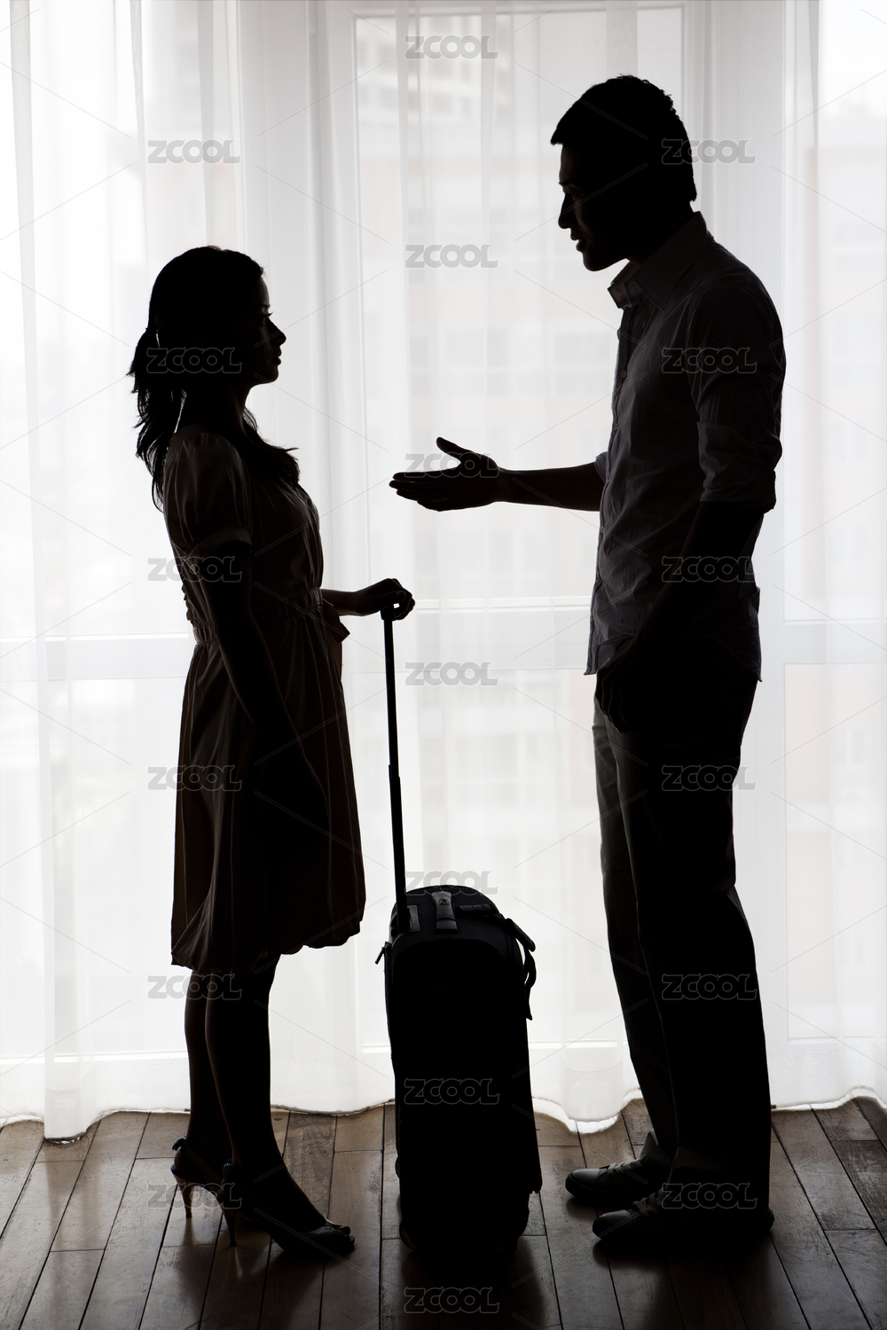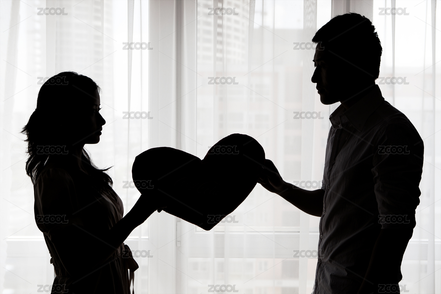 陷入困境的夫婦抱著一個心臟形狀,剪影