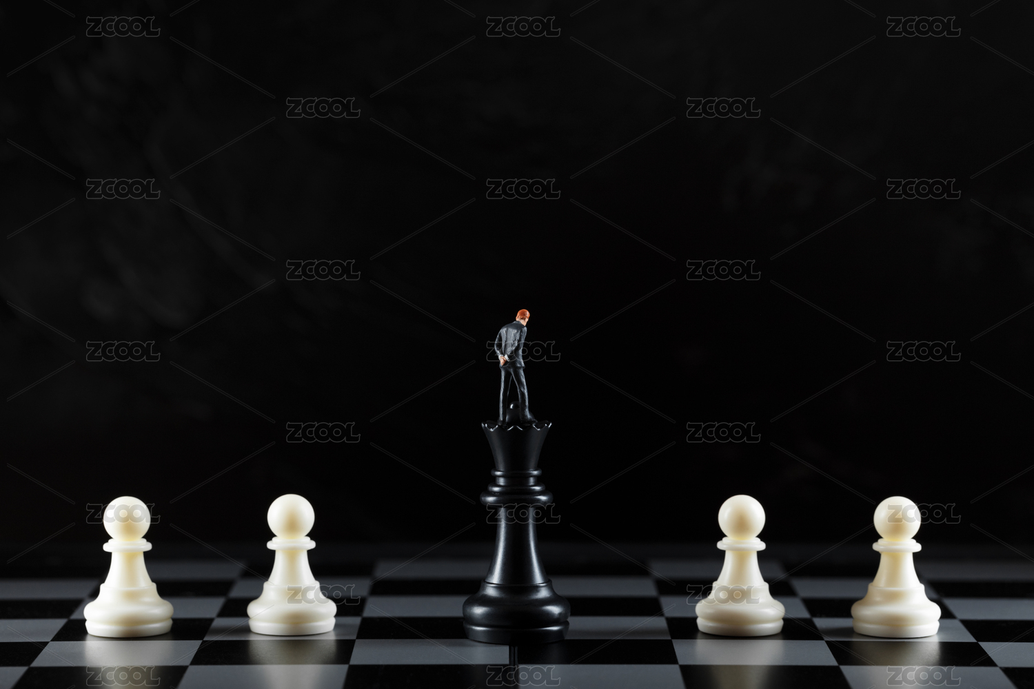國際象棋站在棋子上焦慮的西裝男子在思考如何擺脫困境