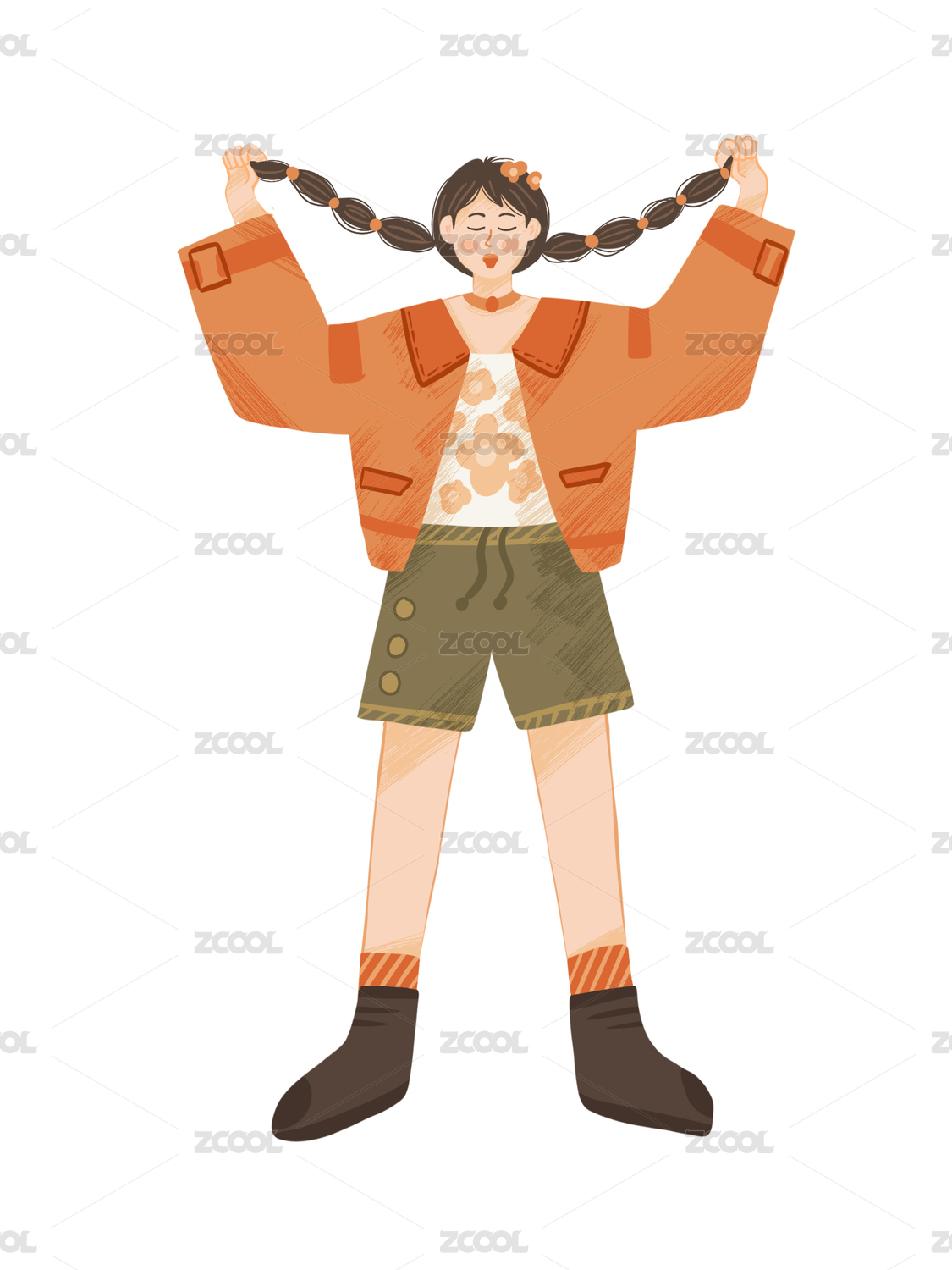 溫暖手繪-可愛的辮子女孩