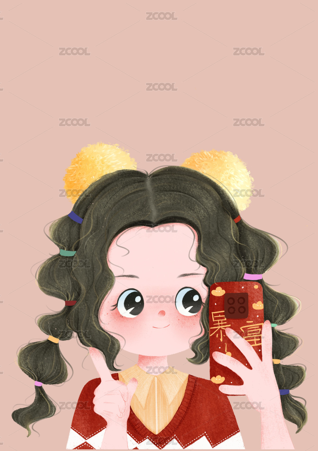 溫暖手繪-扎辮子的大眼睛女孩2