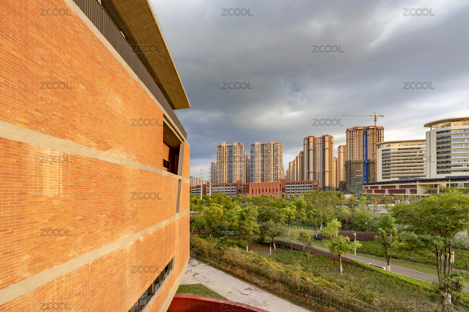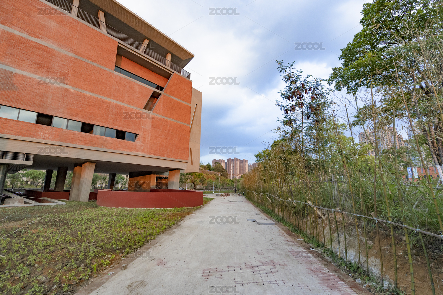 中國龍巖新建的紅磚外墻的工業(yè)風(fēng)現(xiàn)代建筑