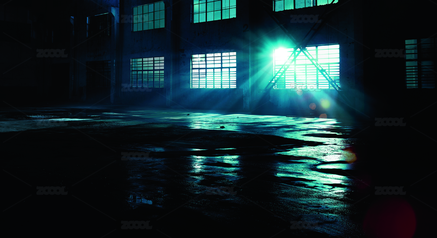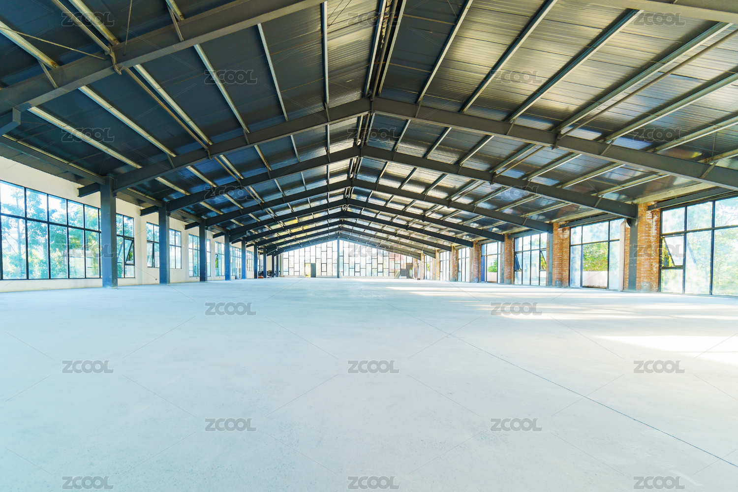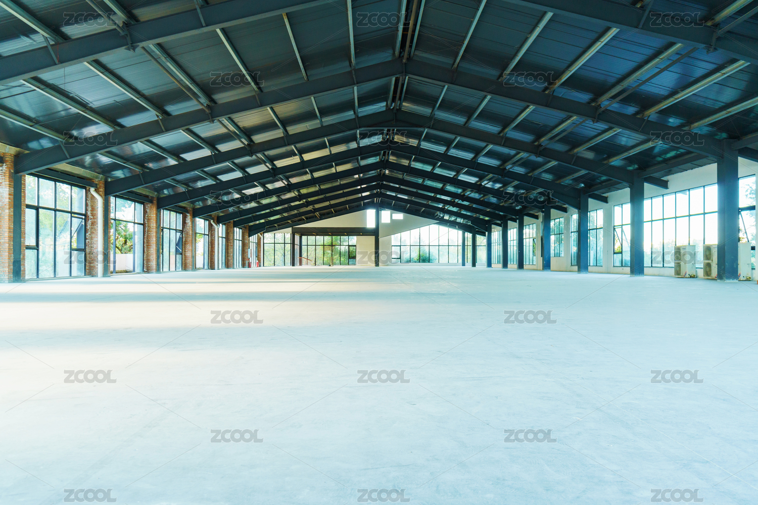 空曠無人的工業(yè)建筑風(fēng)格室內(nèi)晴天