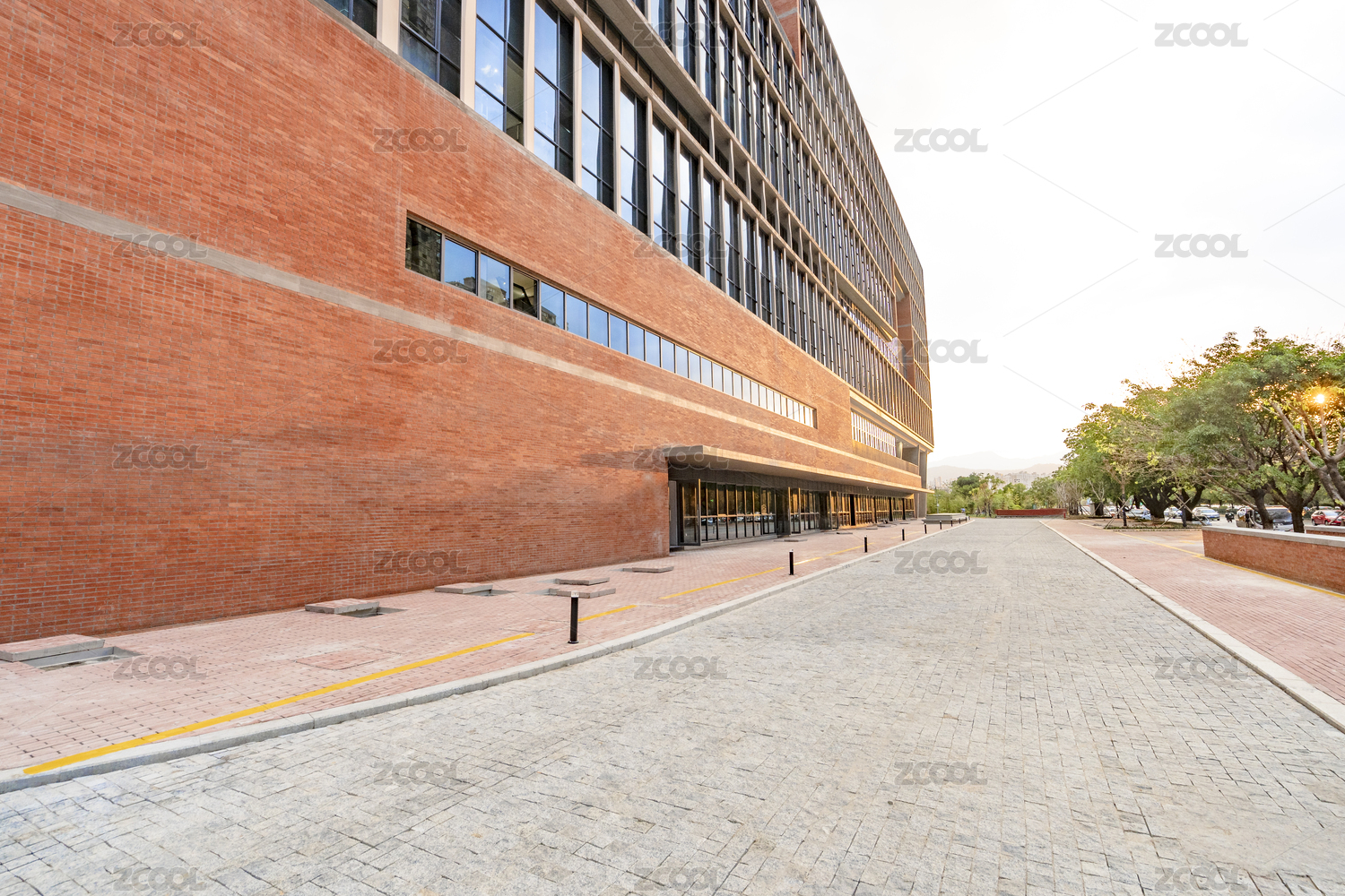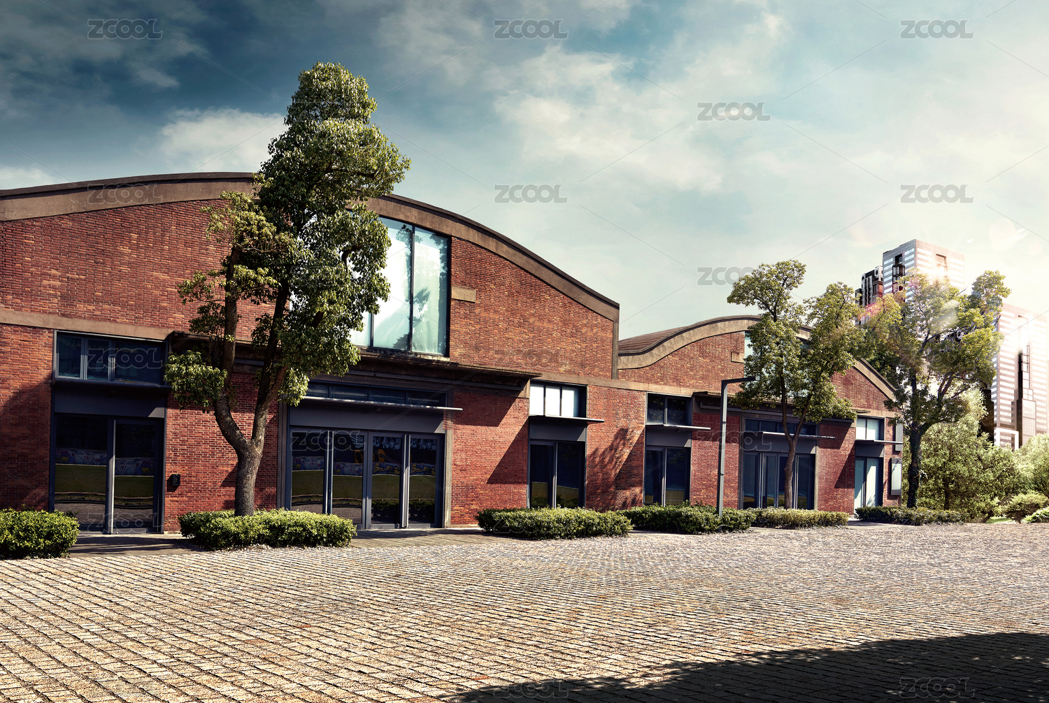 新建的紅磚外墻的工業(yè)風(fēng)現(xiàn)代建筑及石塊地板