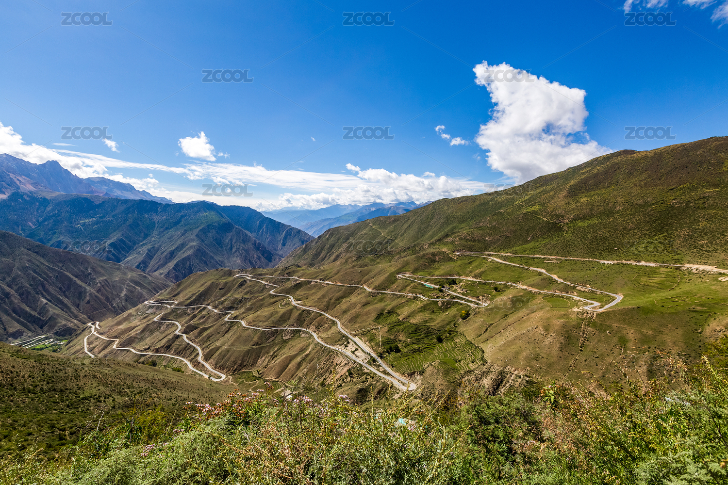 中國西藏昌都葉拉山埡口七十二拐然烏湖風光