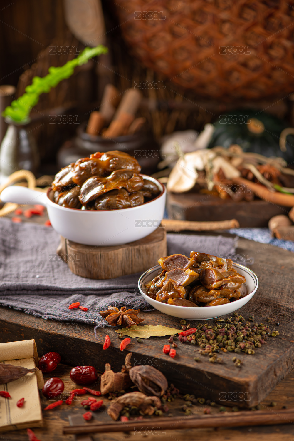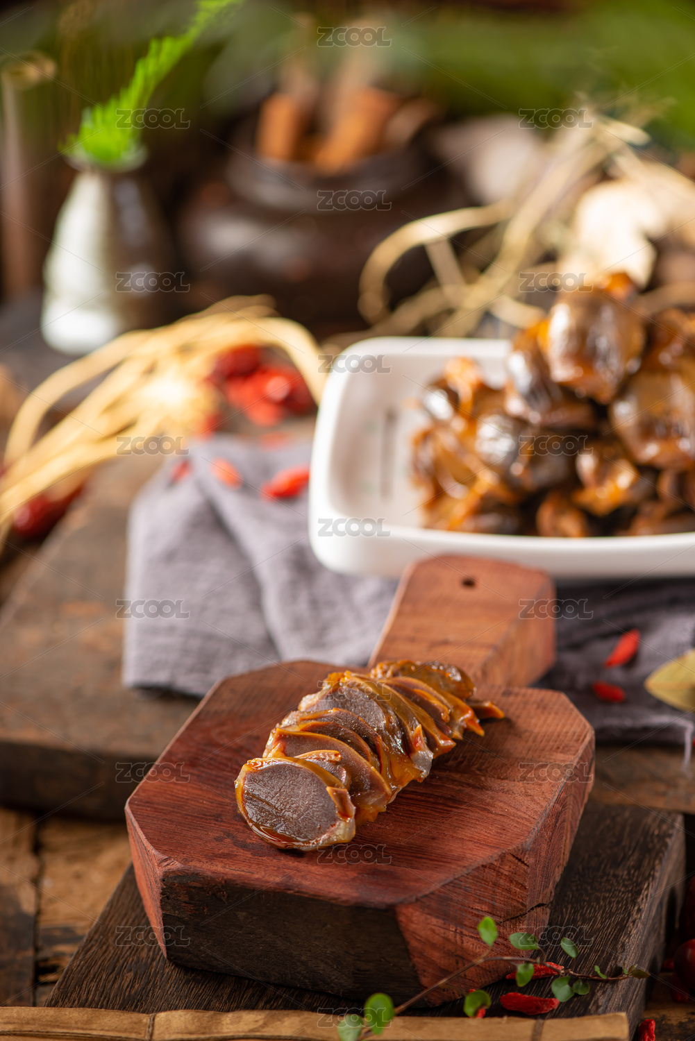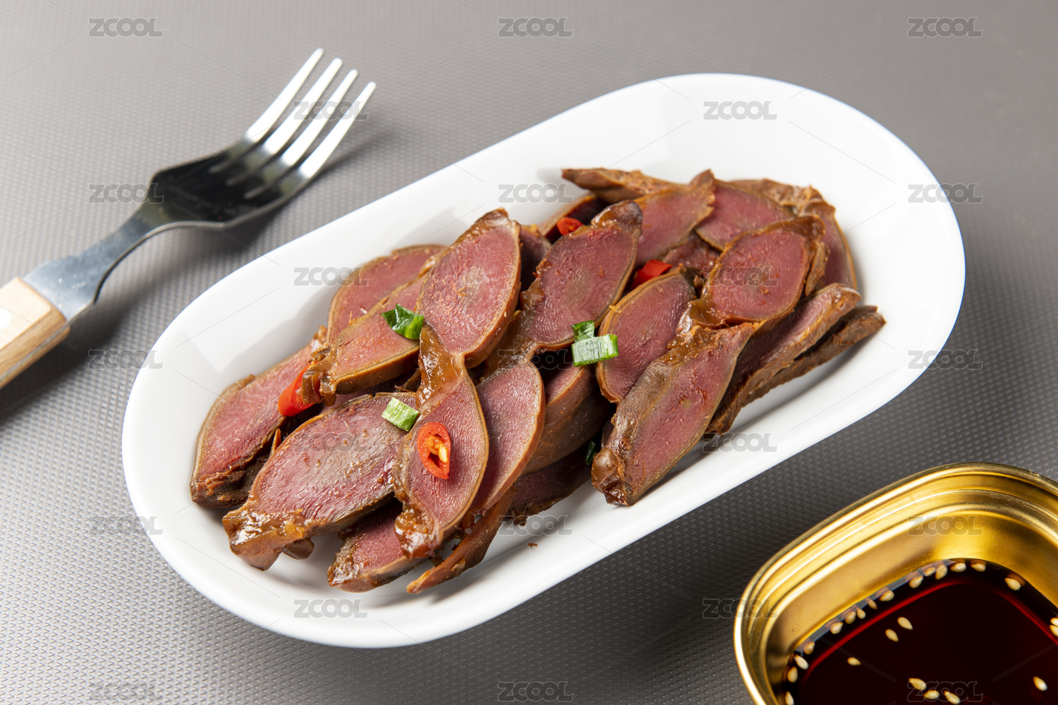 深色背景盤中鹵鴨胗