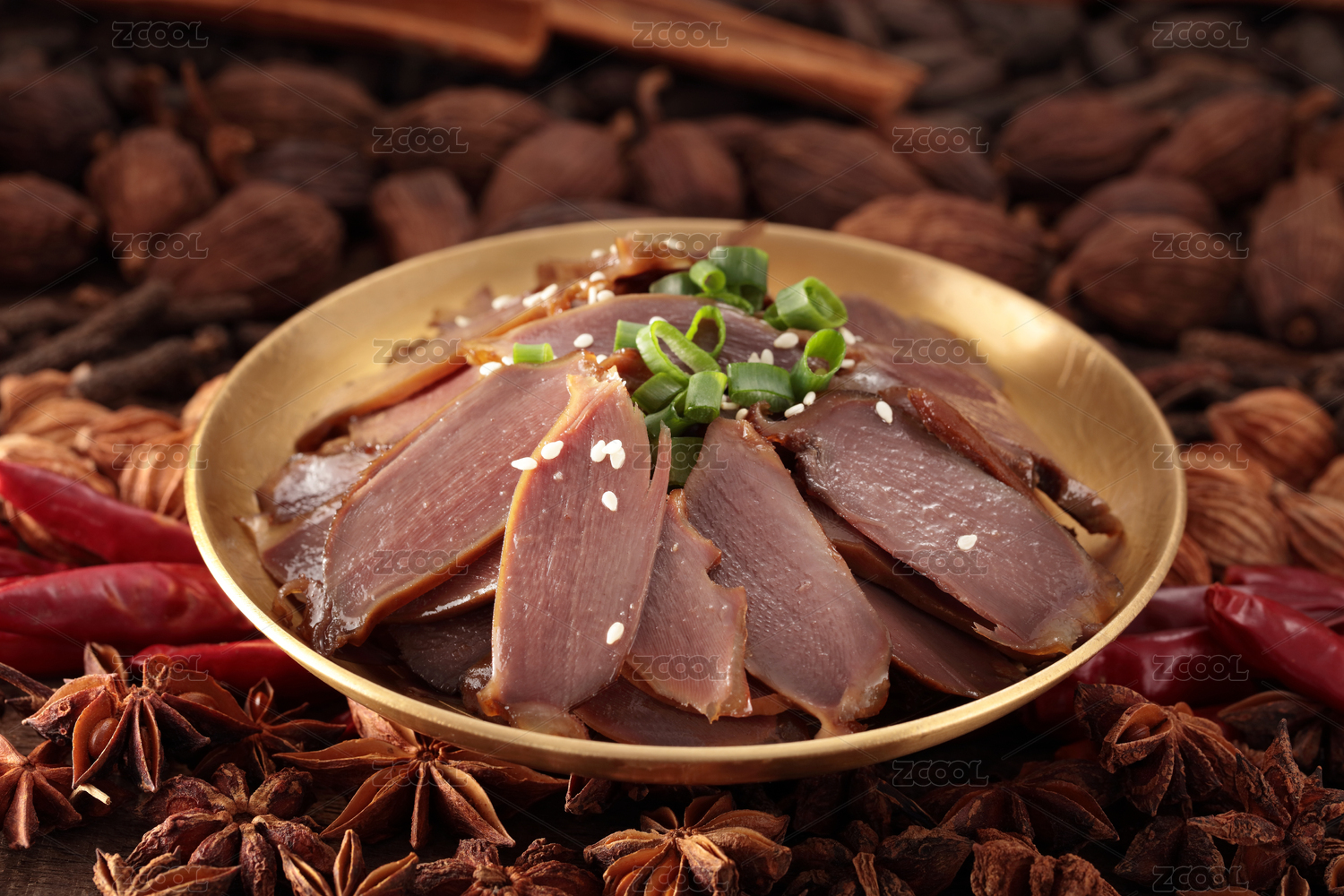 銅盤里的川味鹵菜鹵鴨胗鹵雞胗