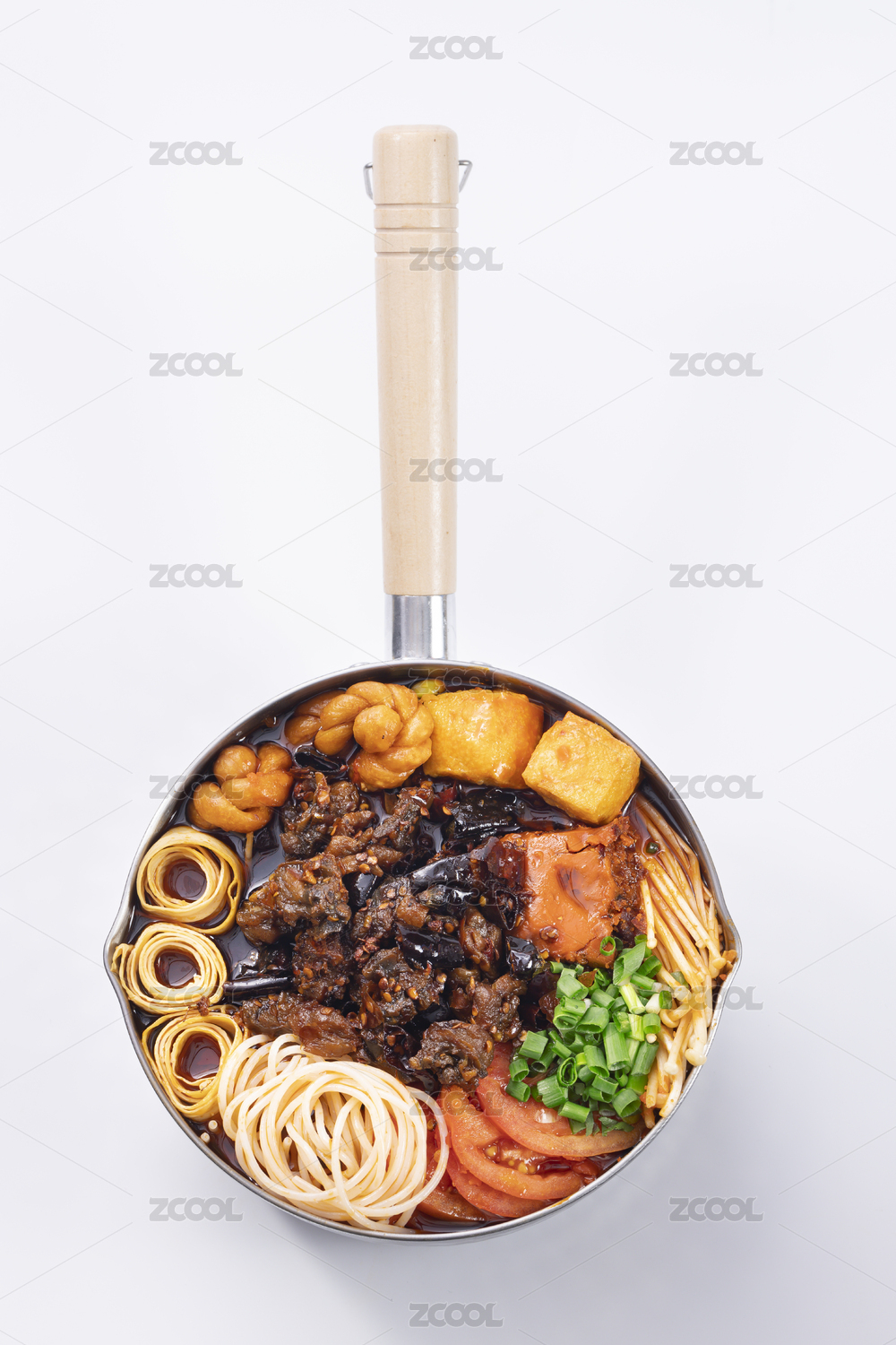 手柄鍋里的重慶麻辣小火鍋米線酥肉米線