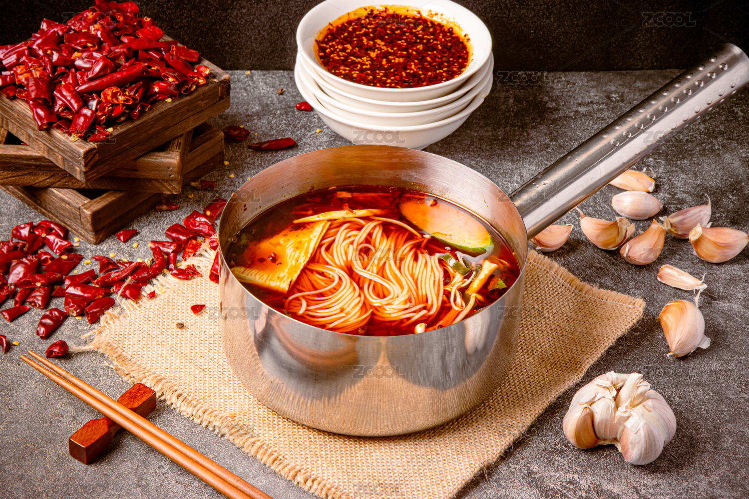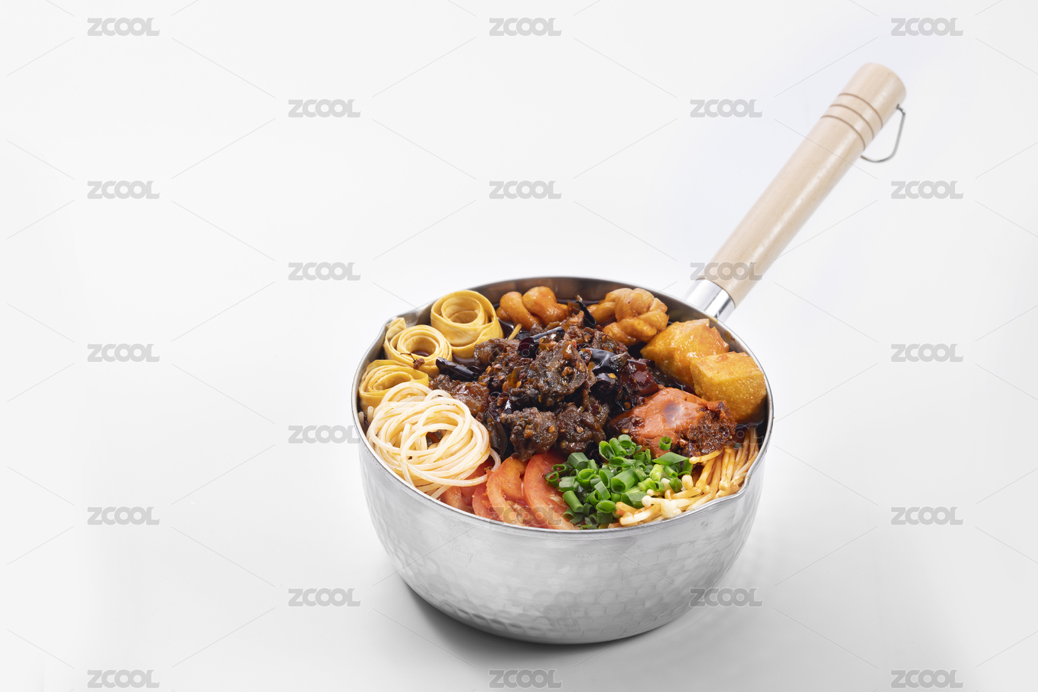手柄鍋里重慶麻辣小火鍋米線牛肉火鍋米線