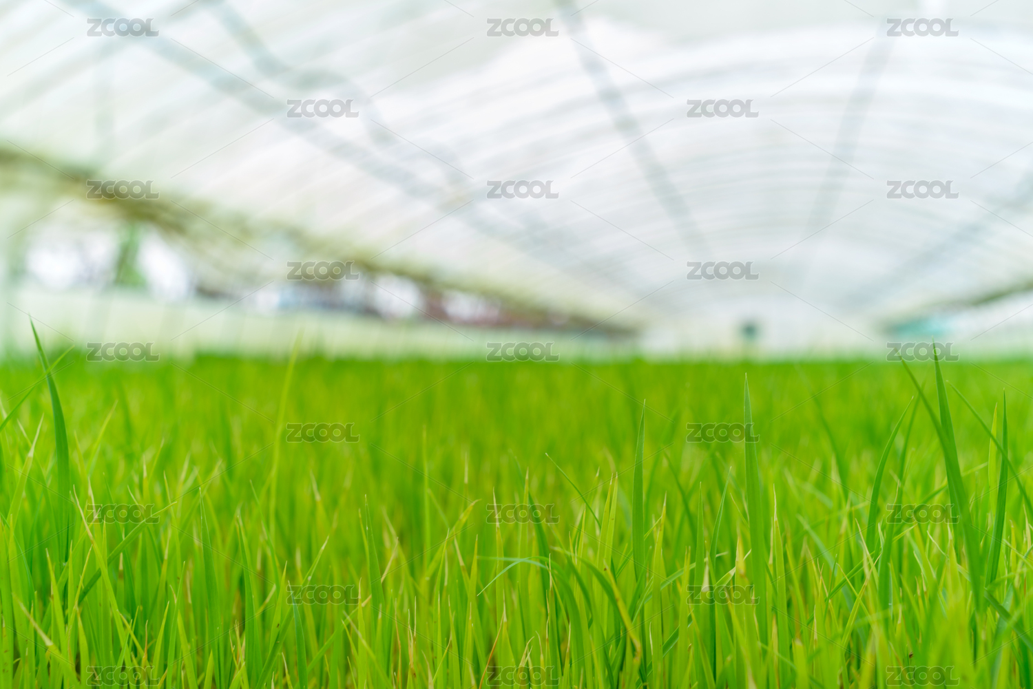 塑料大棚里的水稻秧苗