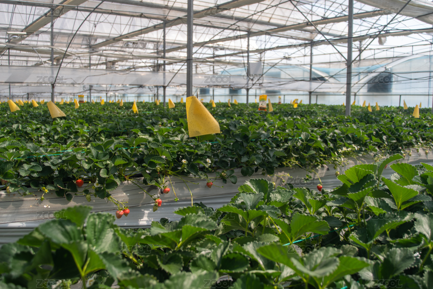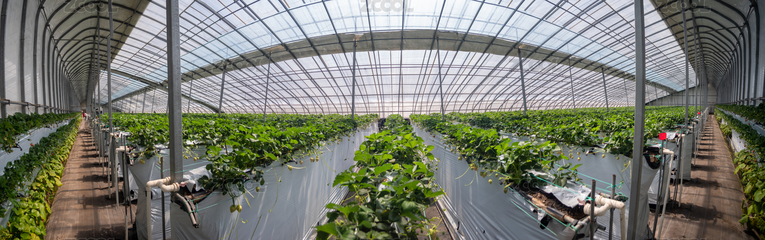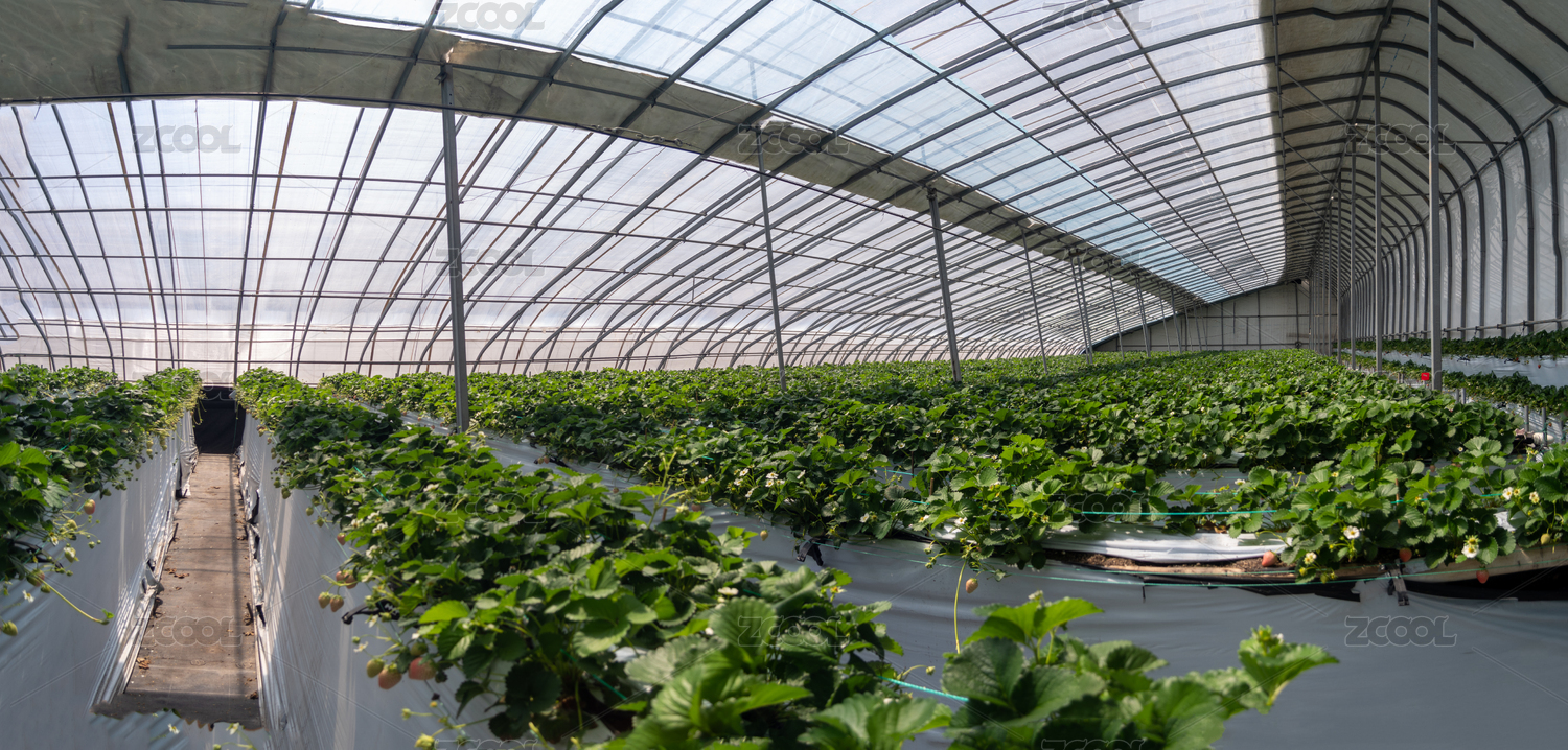 現(xiàn)代化塑料大棚進行草莓栽培