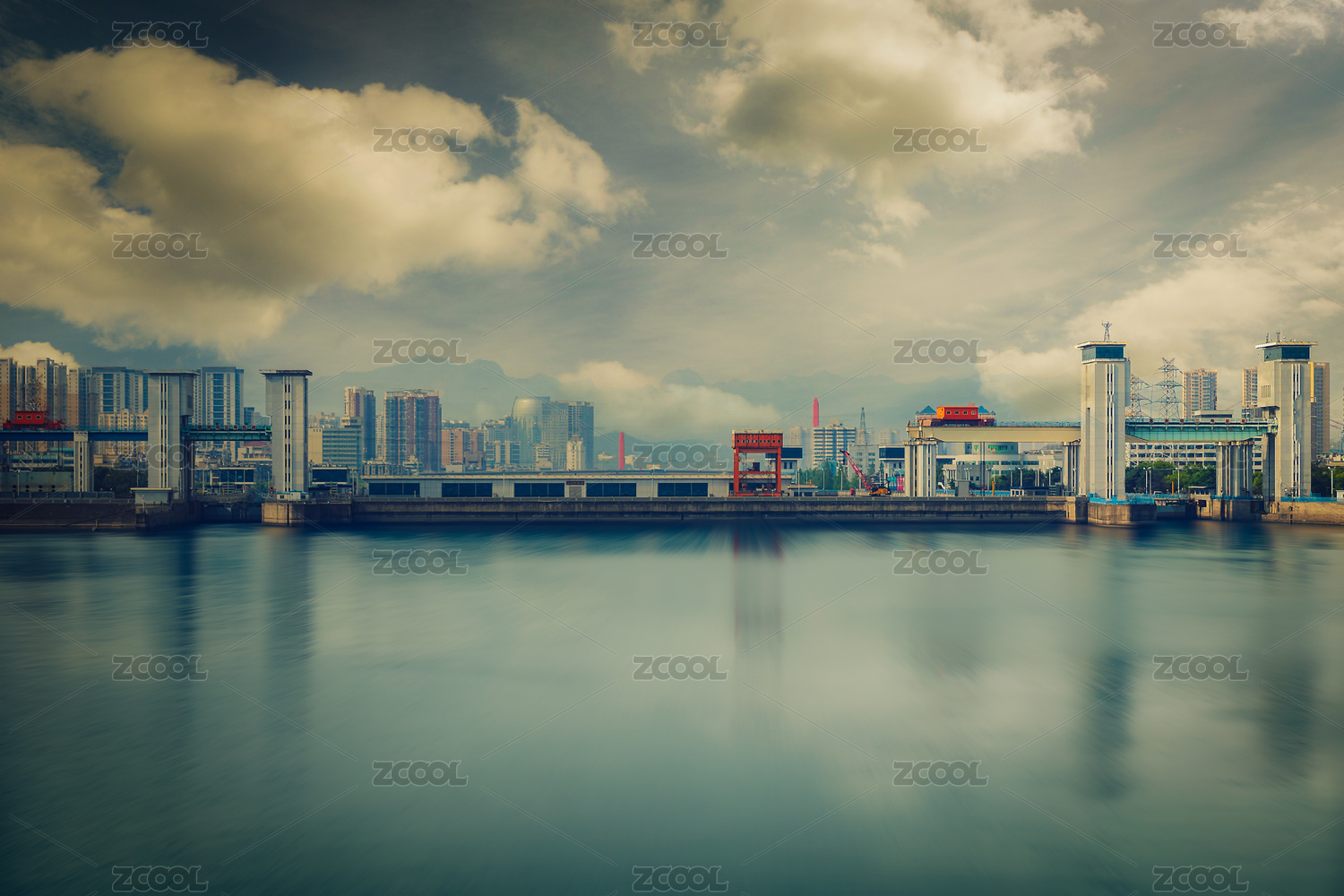 春季清晨湖北宜昌葛洲壩風(fēng)景