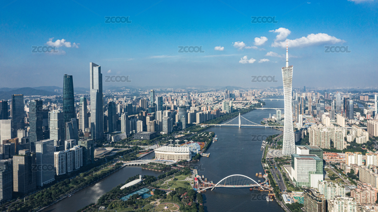 廣州珠江新城新地標(biāo)海心橋廣州塔全景風(fēng)光