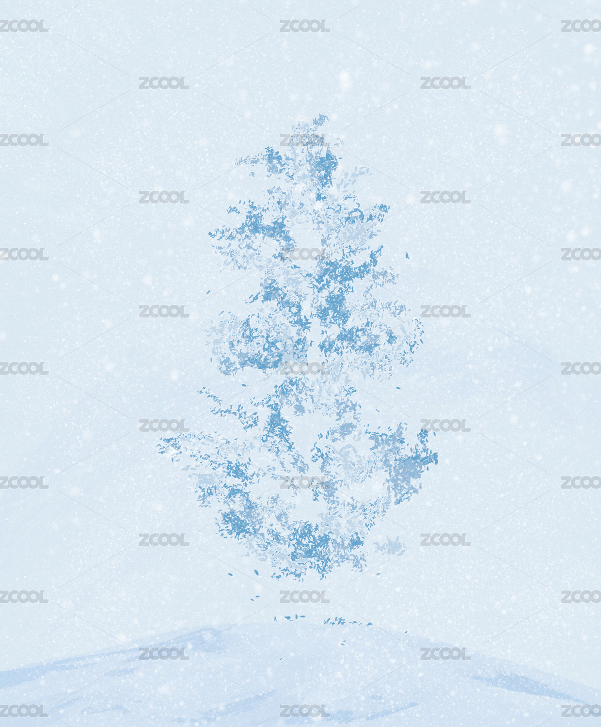 冬日里雪花飛揚一顆迎風而立的松針樹插畫圖案