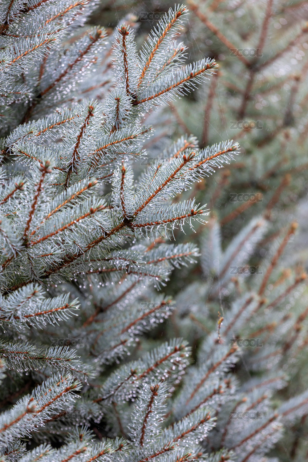 藍云杉樹枝上的水珠