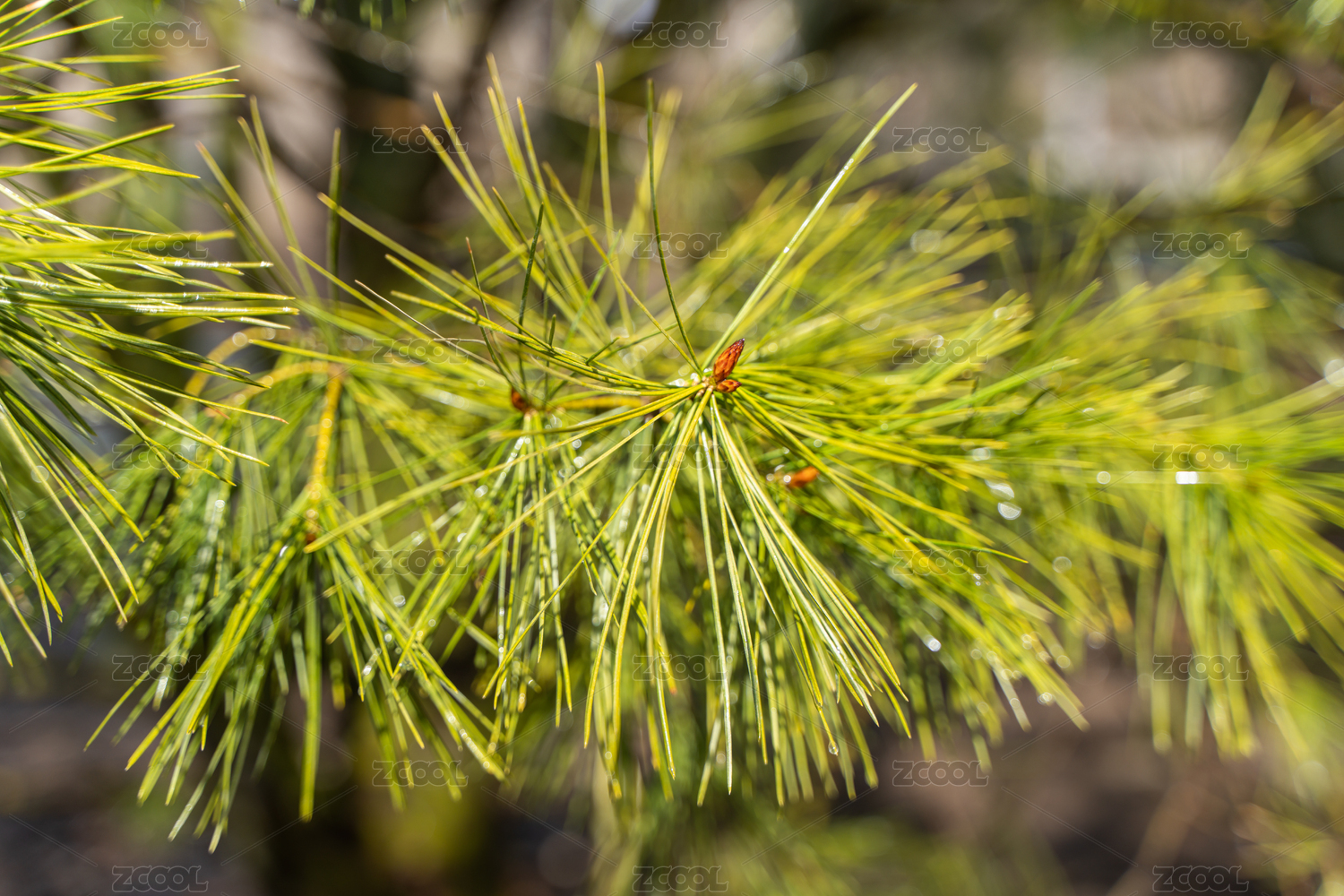 松針樹枝露水特寫