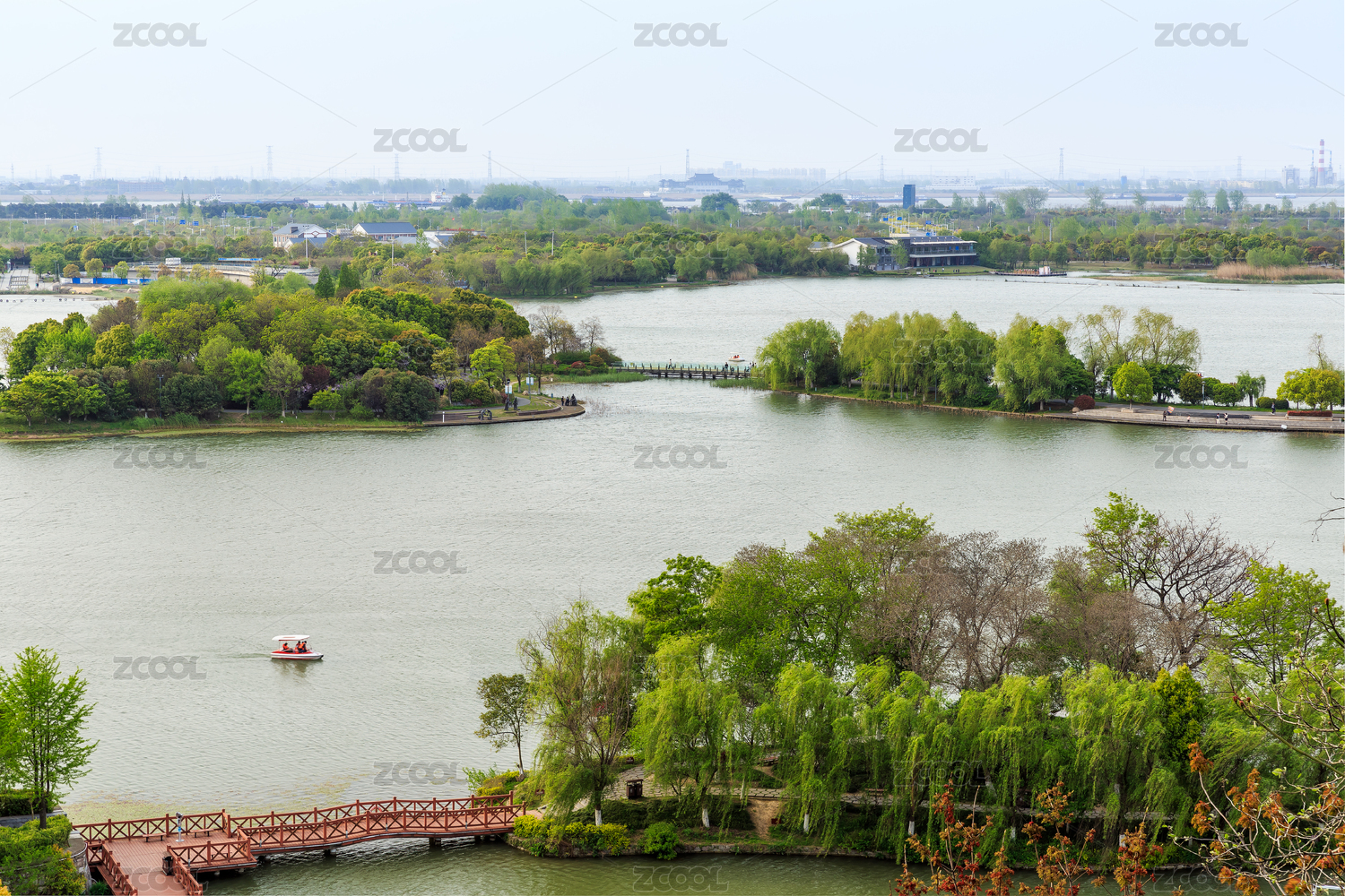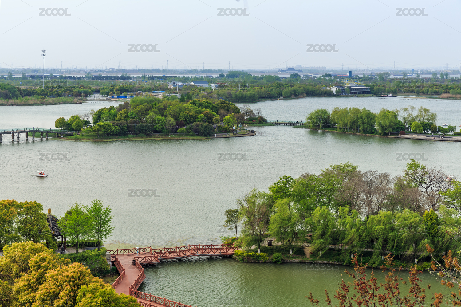 中國(guó)江蘇省鎮(zhèn)江金山寺眺望金山湖自然風(fēng)光