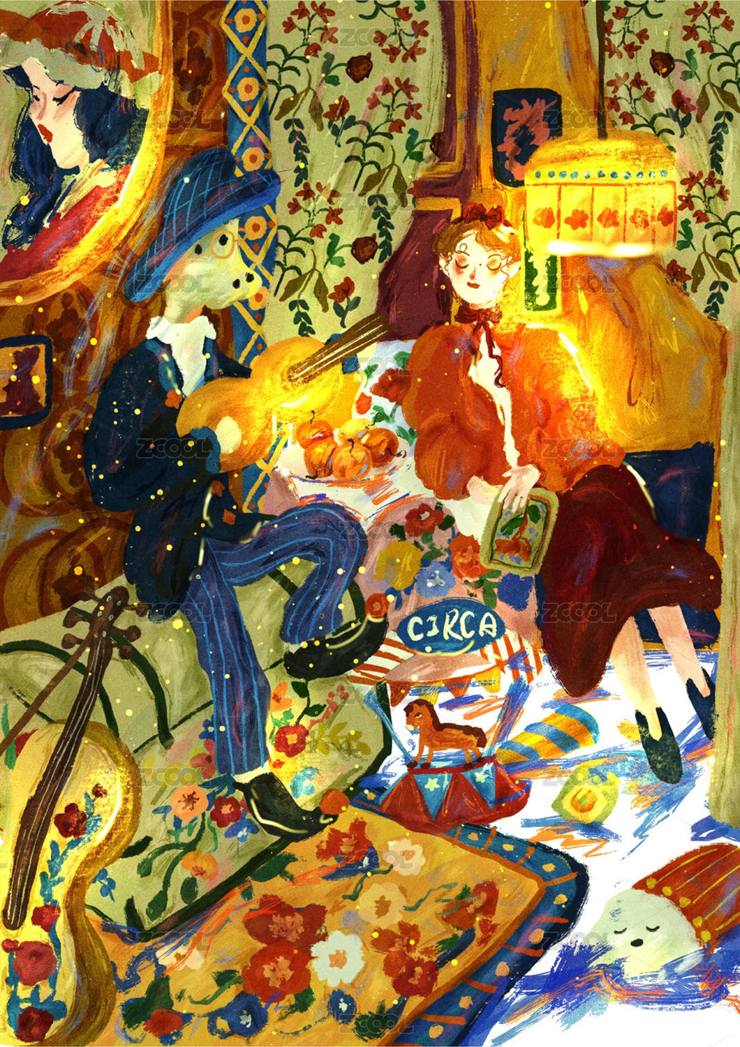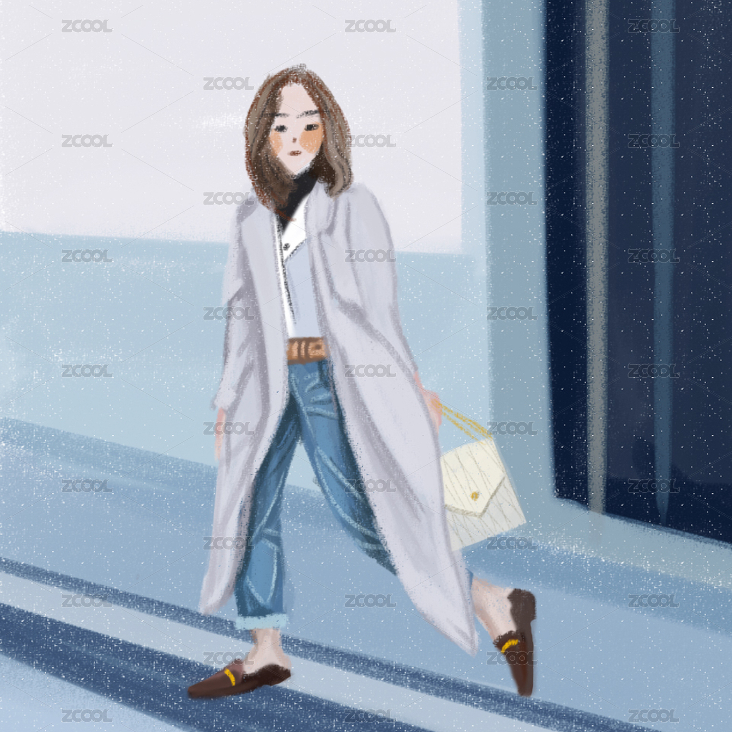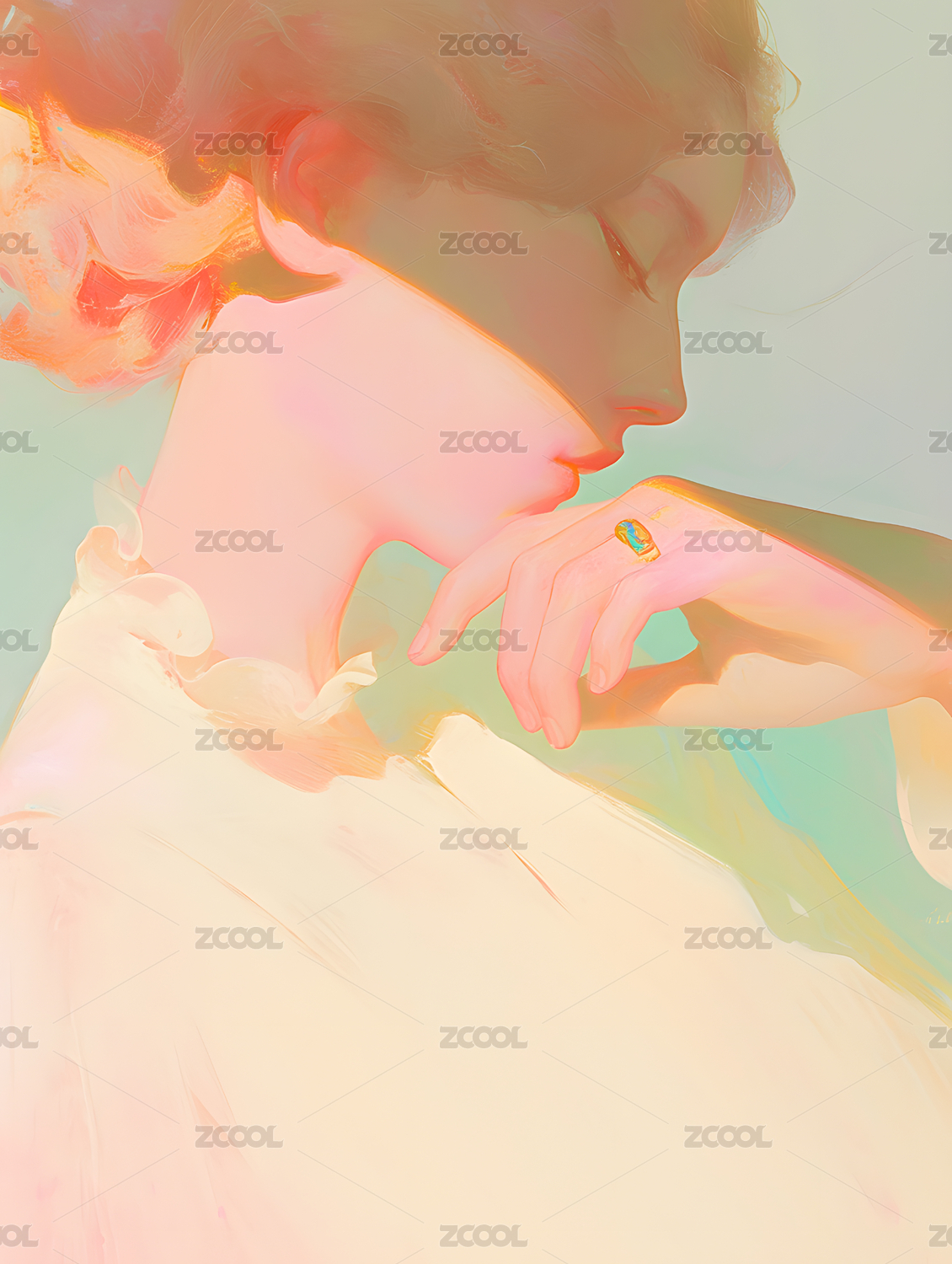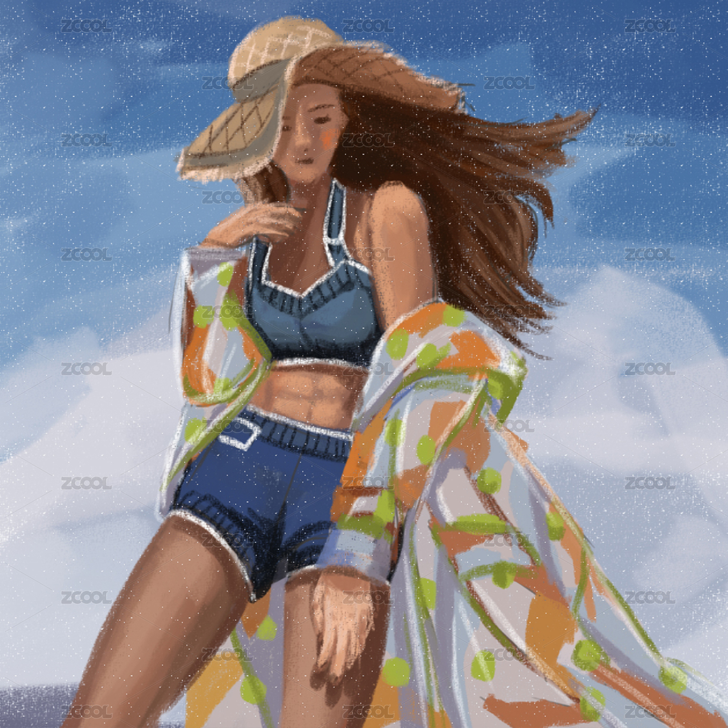 彩色插畫人物美女油畫