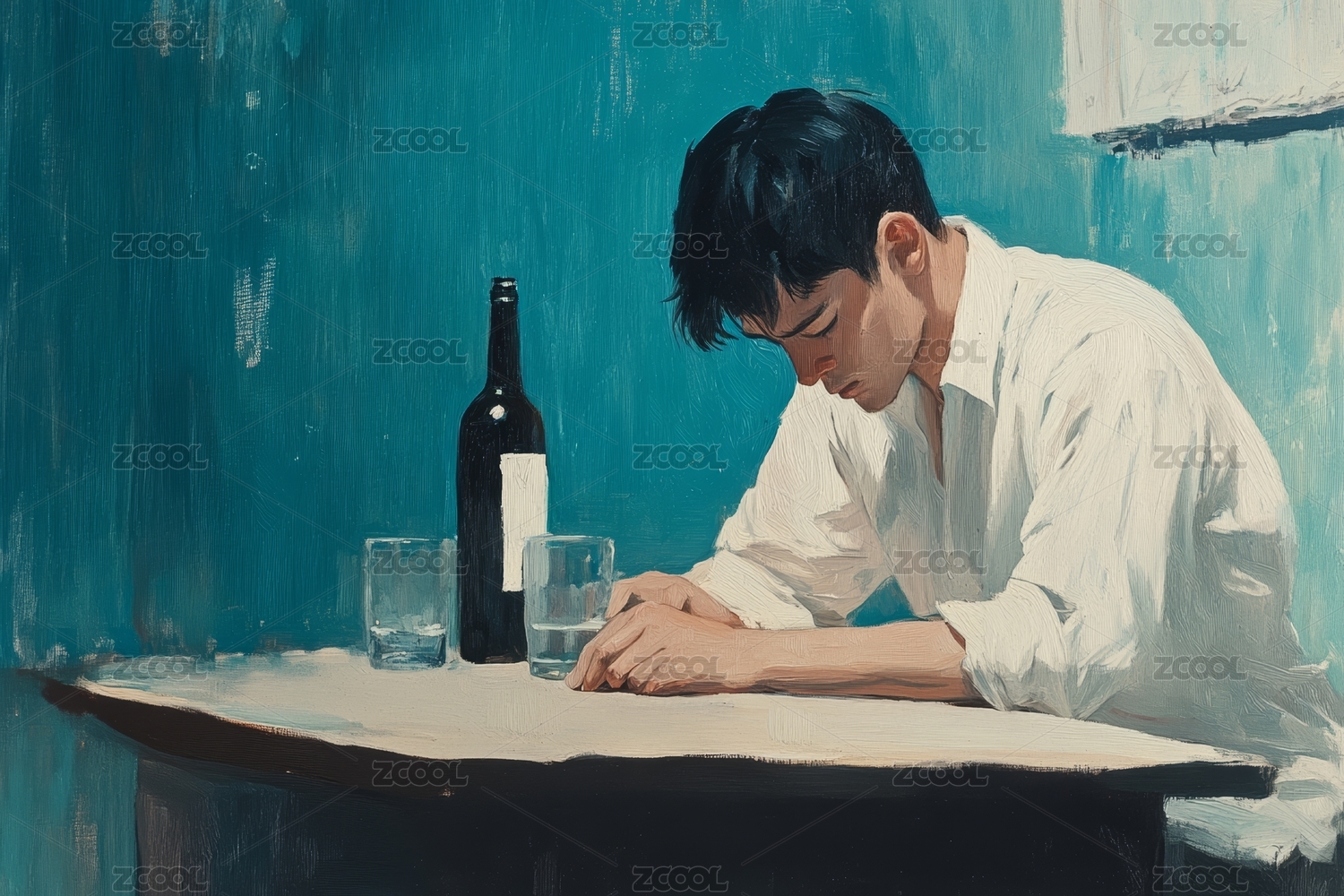 男子獨酌的油畫