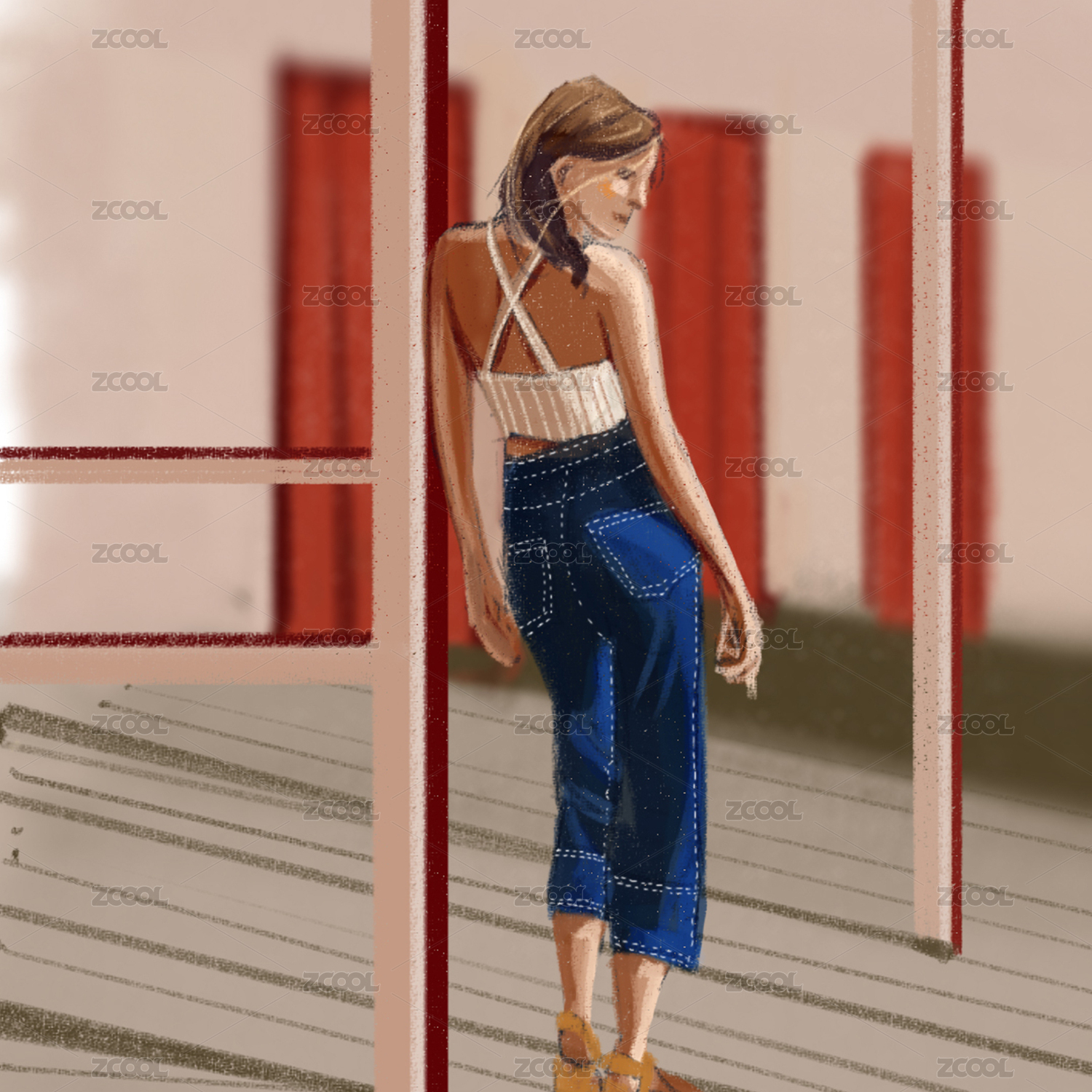 外國女孩油畫風(fēng)板繪插畫