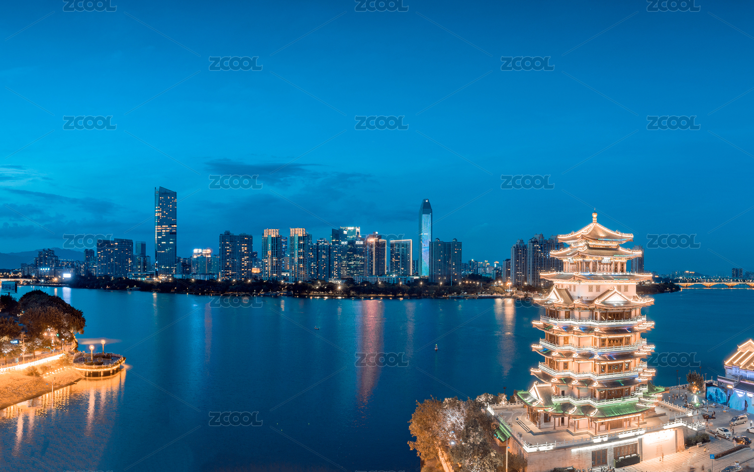 中國廣東省惠州市合江樓城市夜景