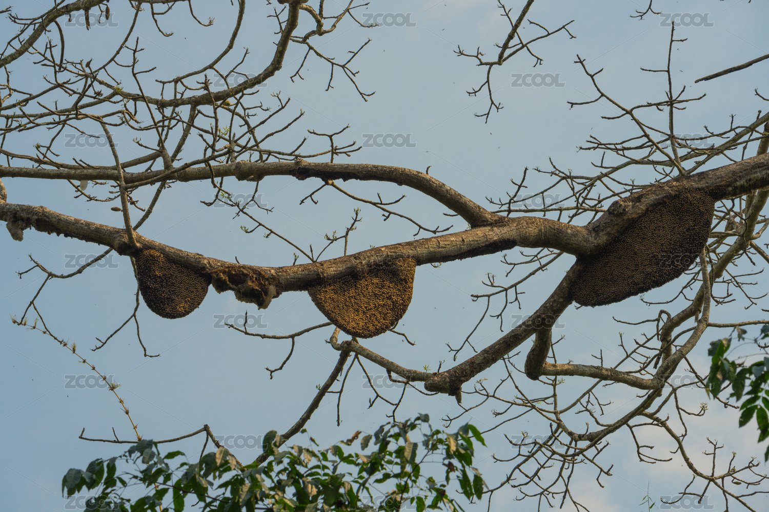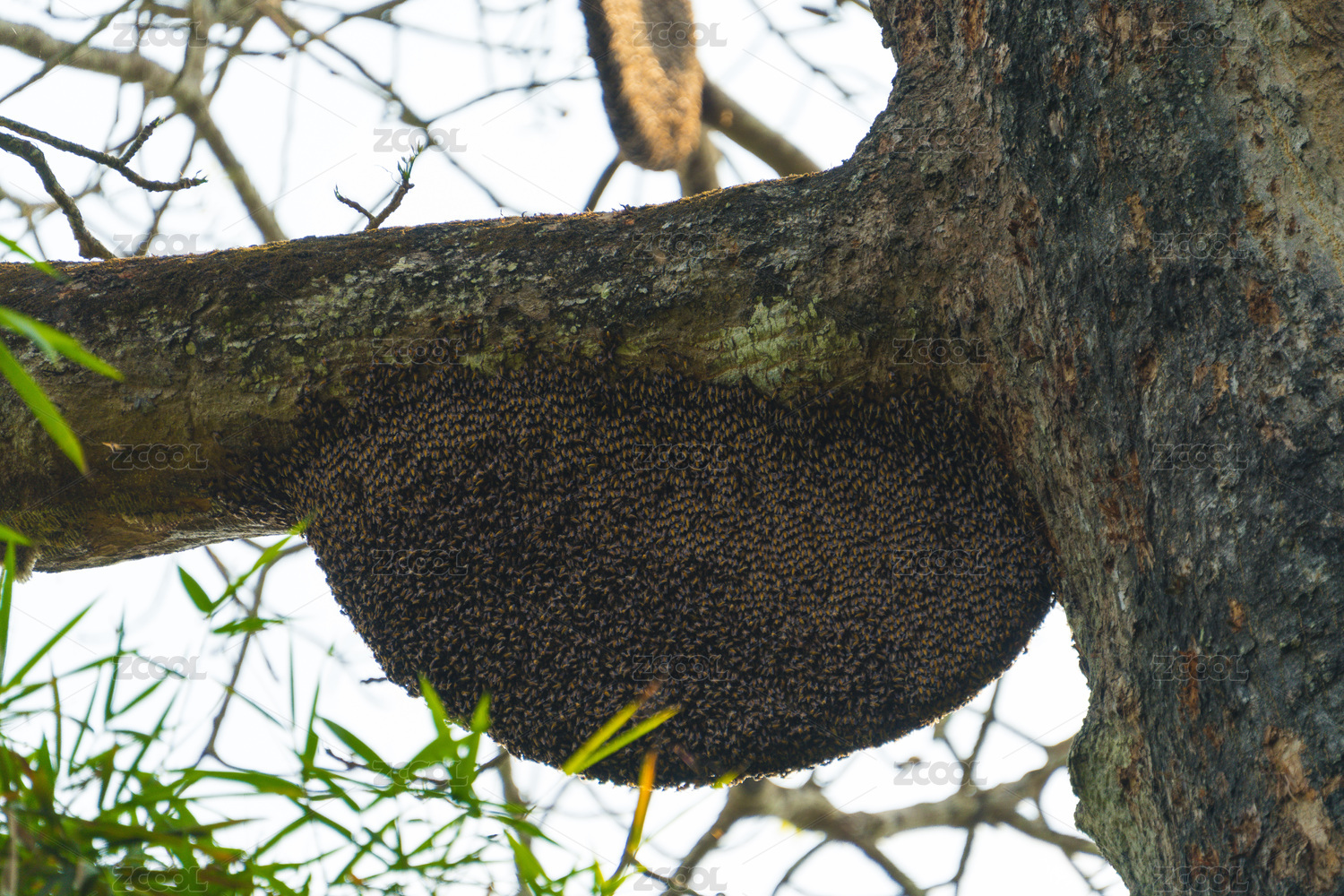 樹干上馬蜂的蜂巢