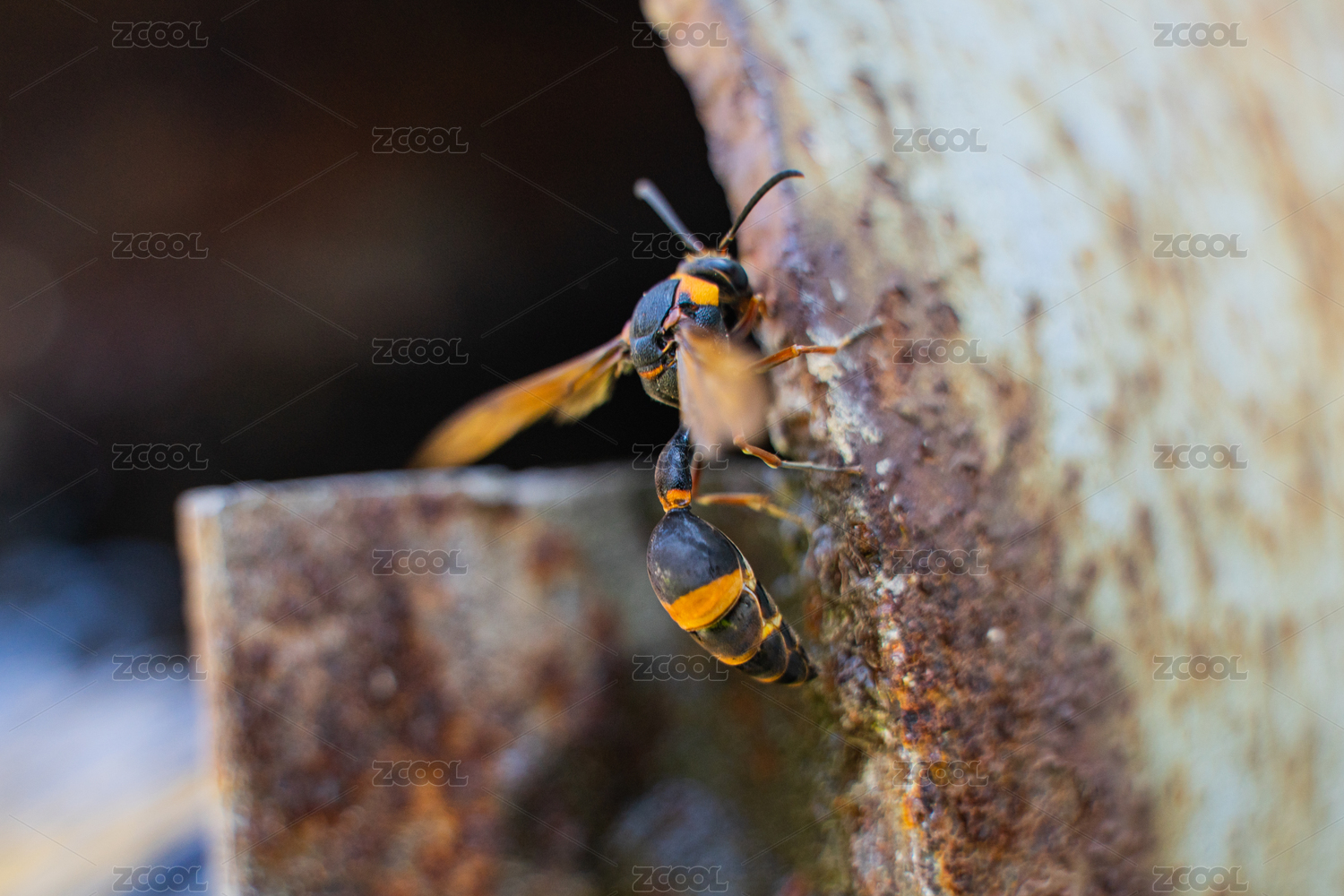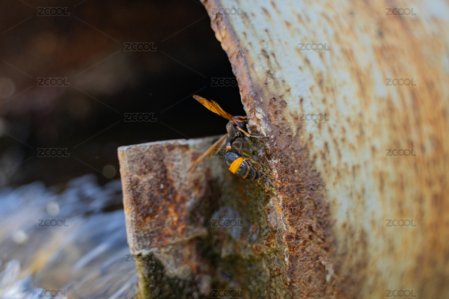 生銹管道上的黃蜂馬蜂