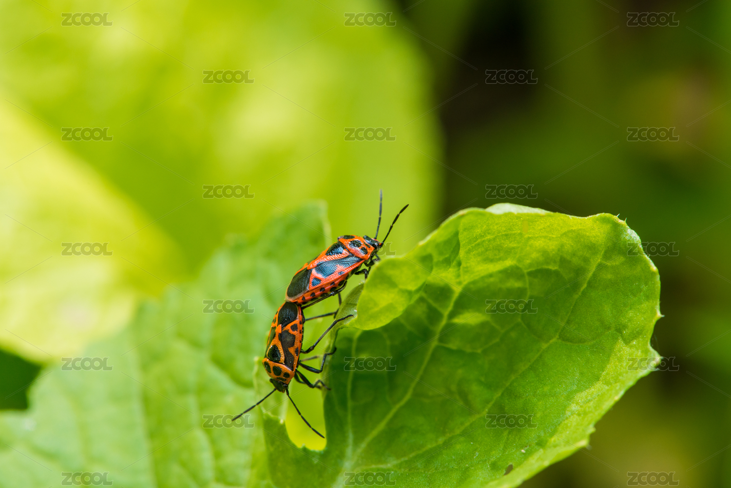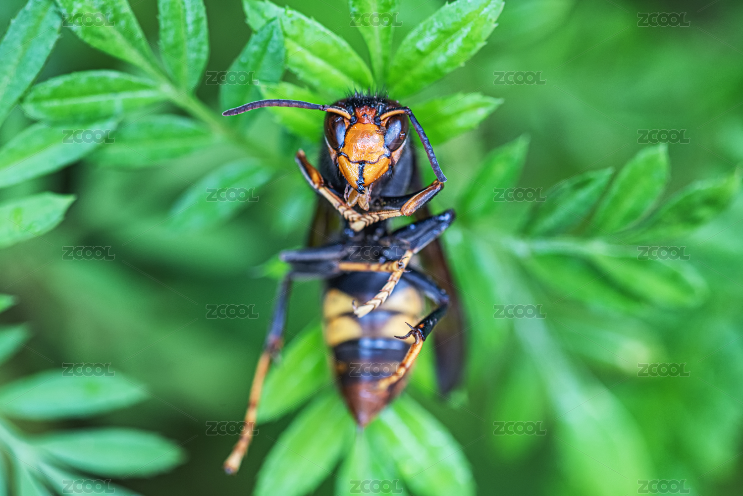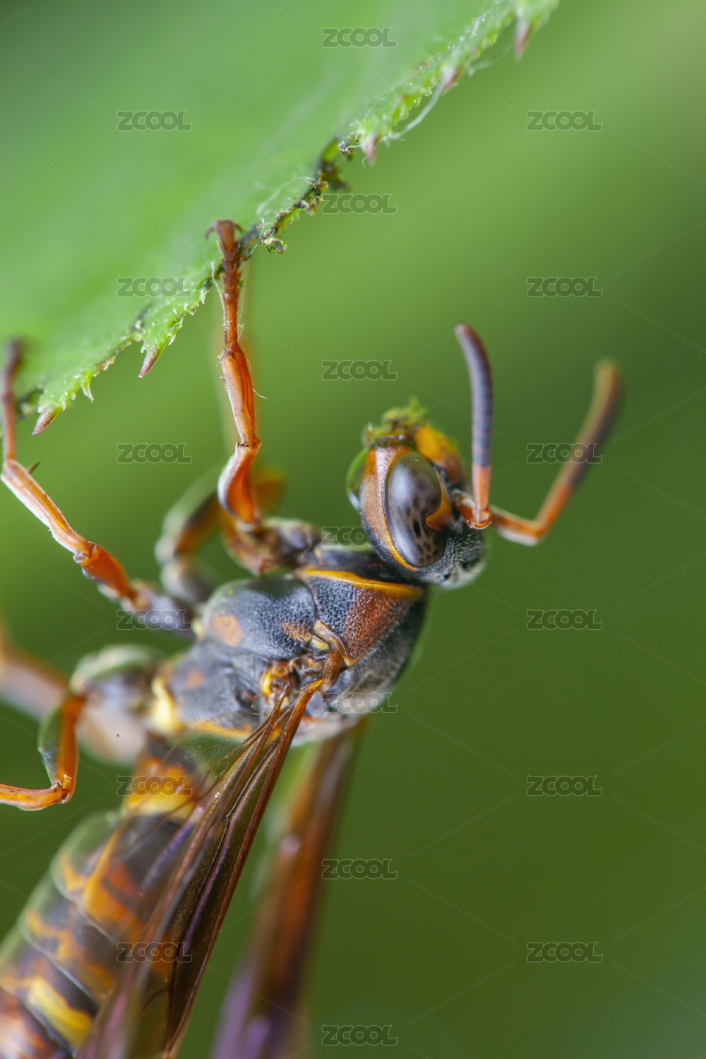 綠葉上的馬蜂微距特寫