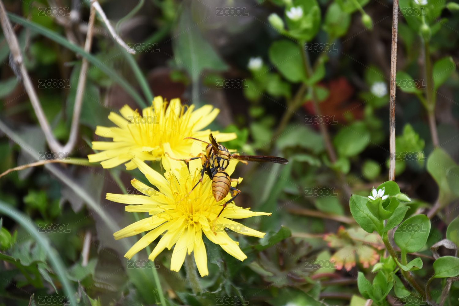 落在野菊花上的馬蜂