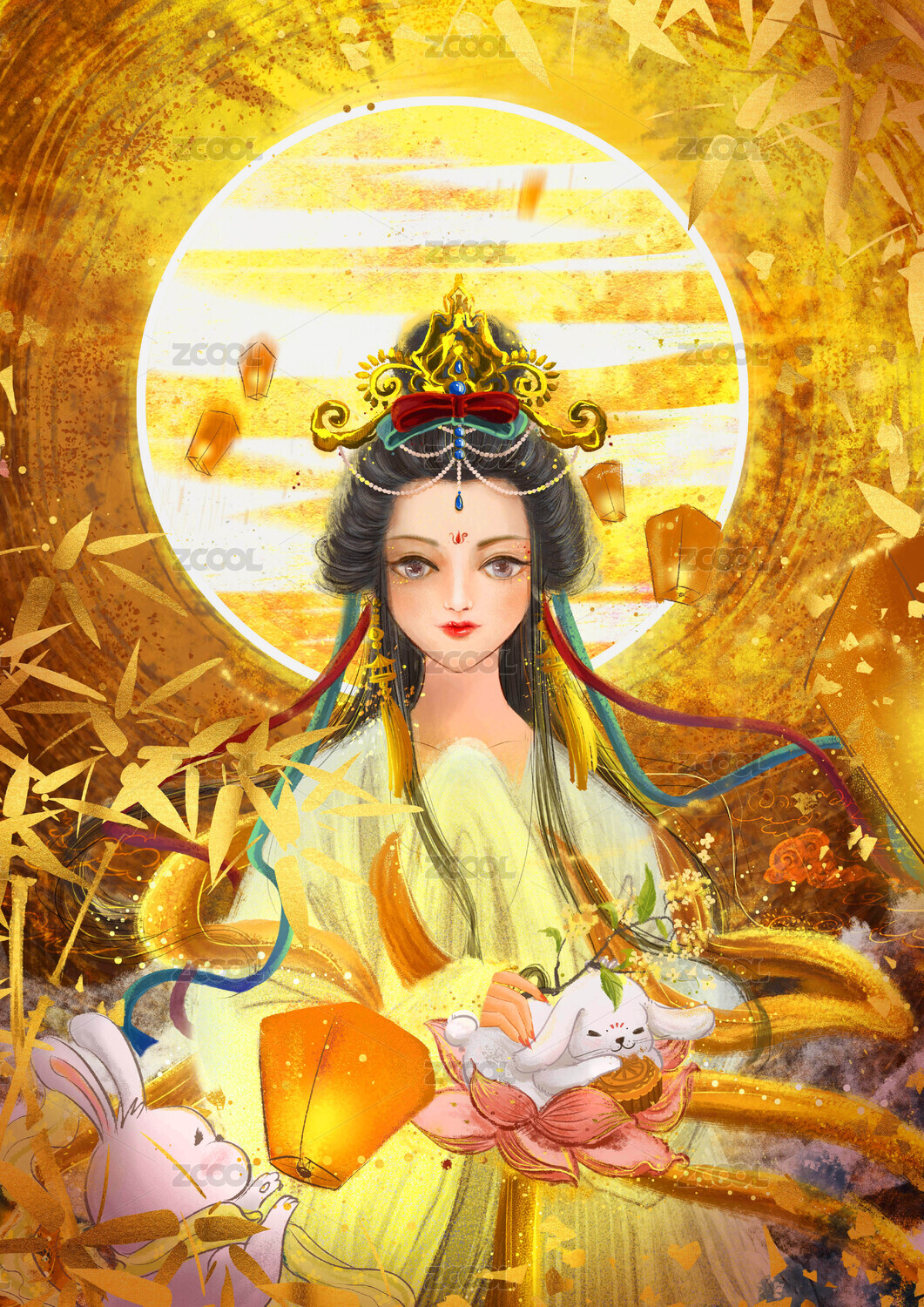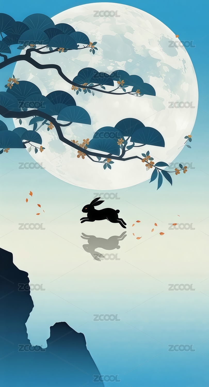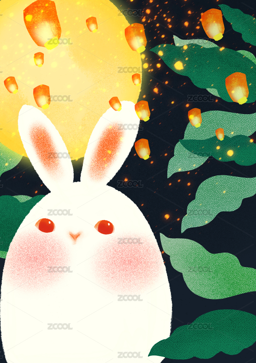 中秋節(jié)海報 包裝素材玉兔VS圓月