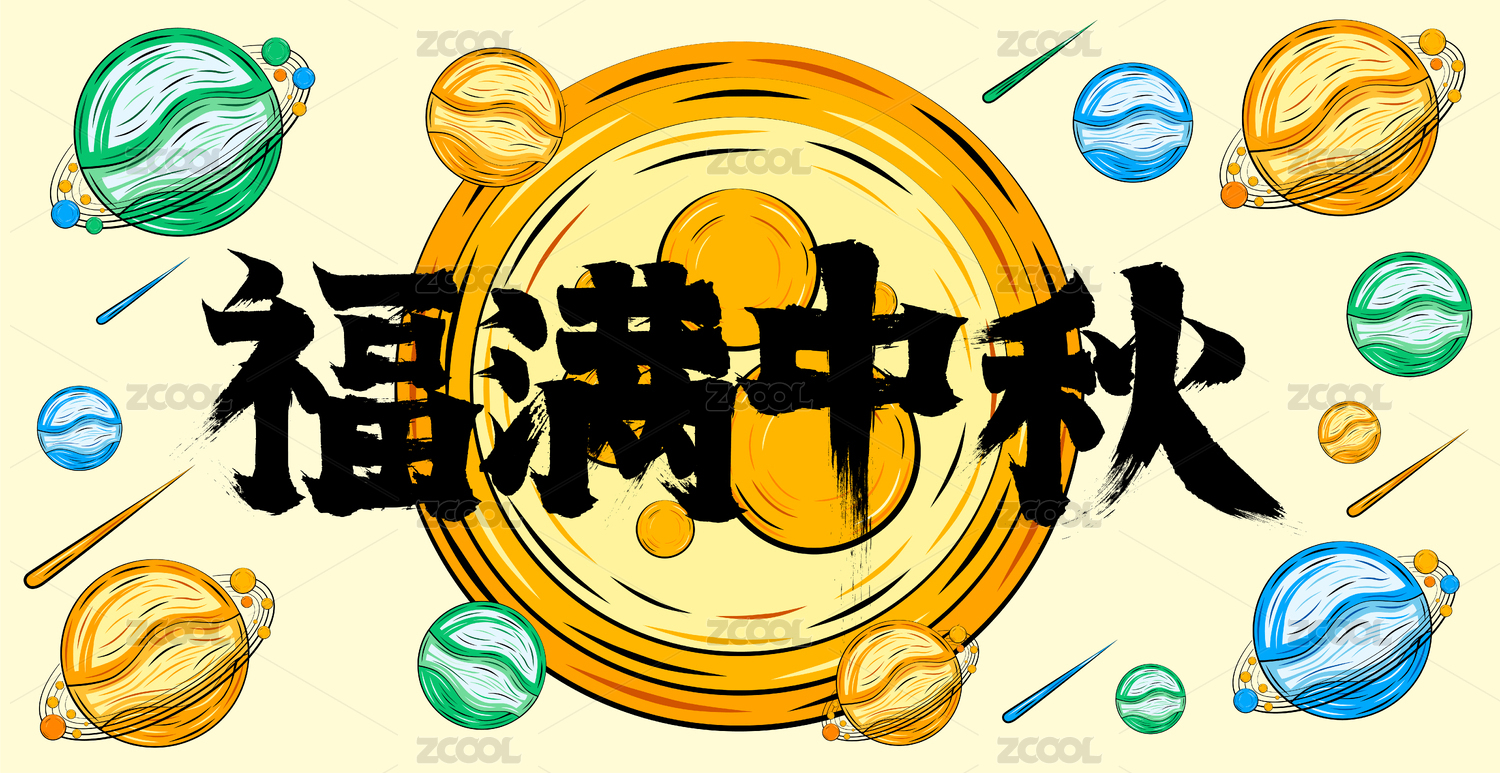 福滿中秋國潮手繪圓月星球星空矢量書法字