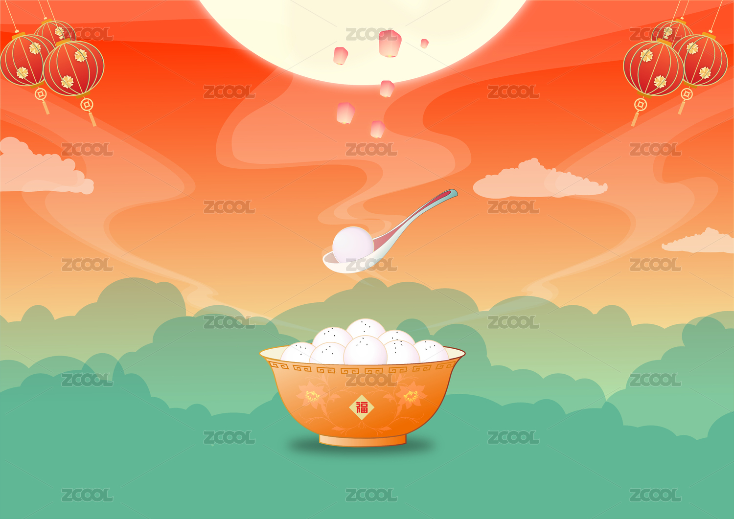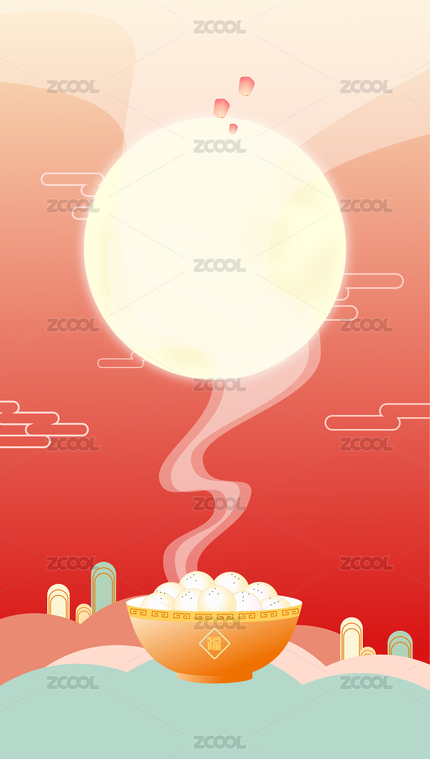 中華傳統(tǒng)節(jié)日元宵節(jié)紅燈籠和圓月矢量插畫