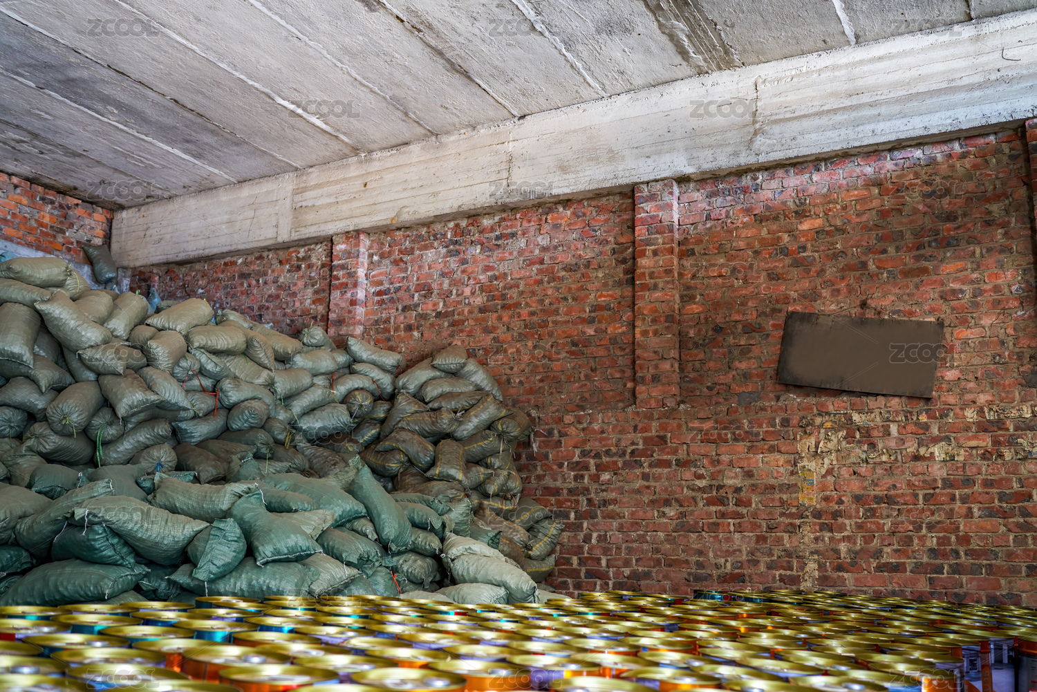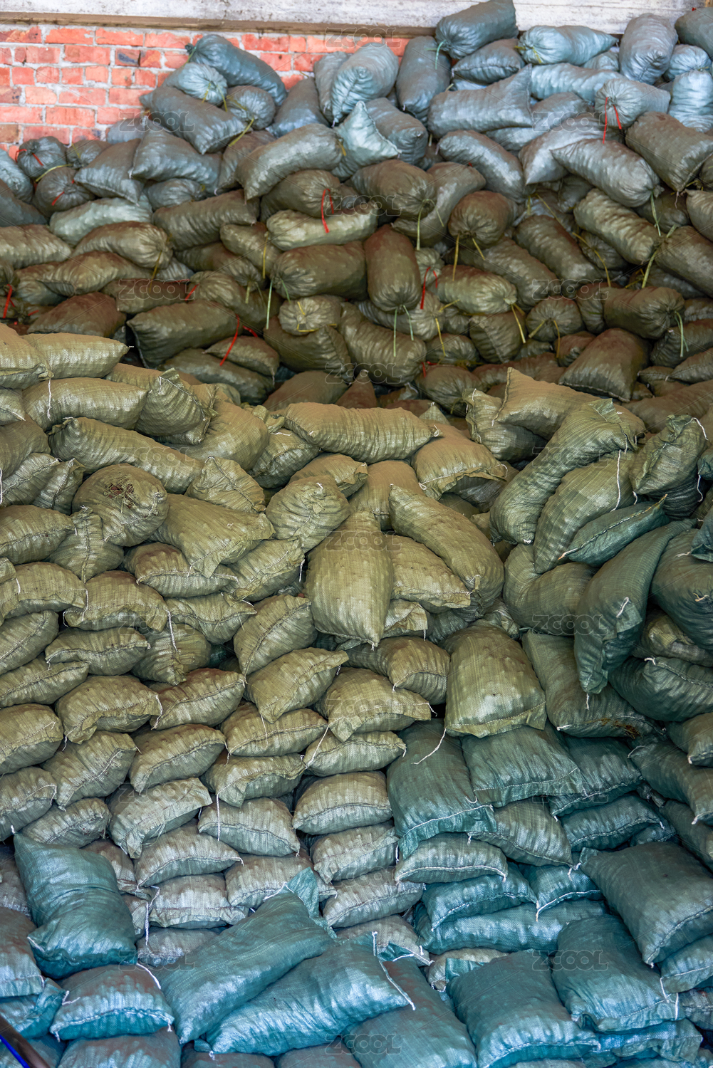 化工倉庫里堆積如山的麻袋貨物