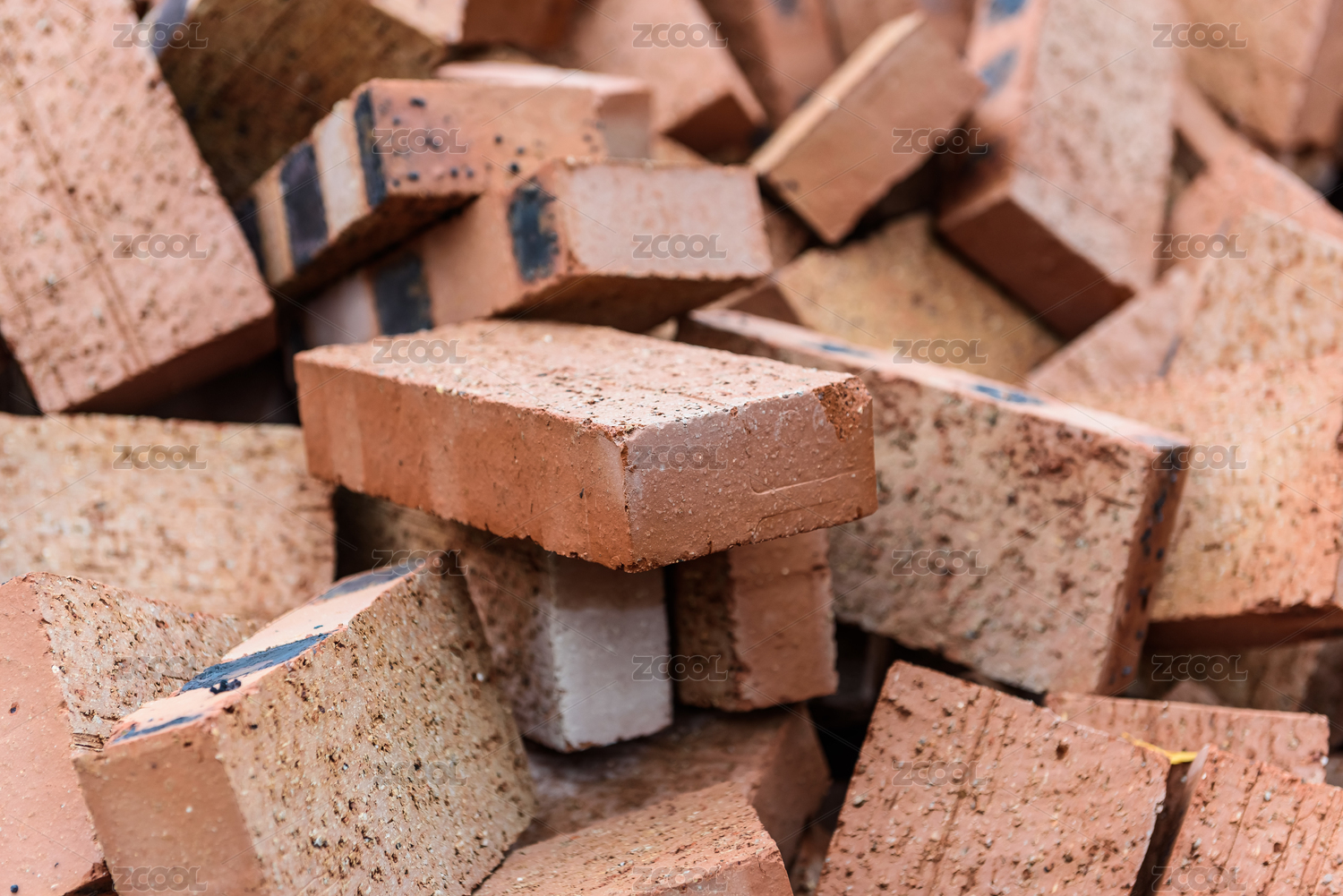 橫七豎八堆積成山的紅色磚頭