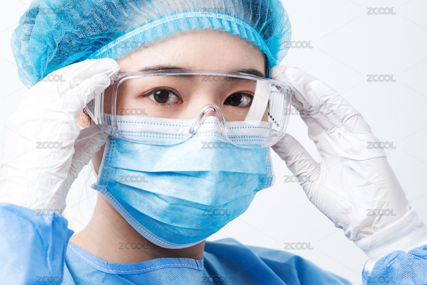醫(yī)護(hù)人員雙手佩戴護(hù)目鏡眼部特寫