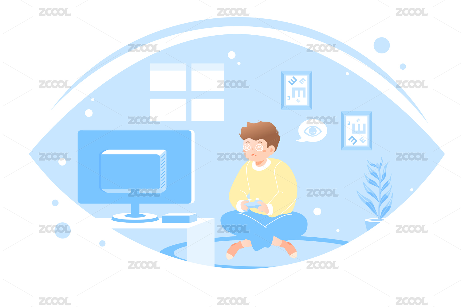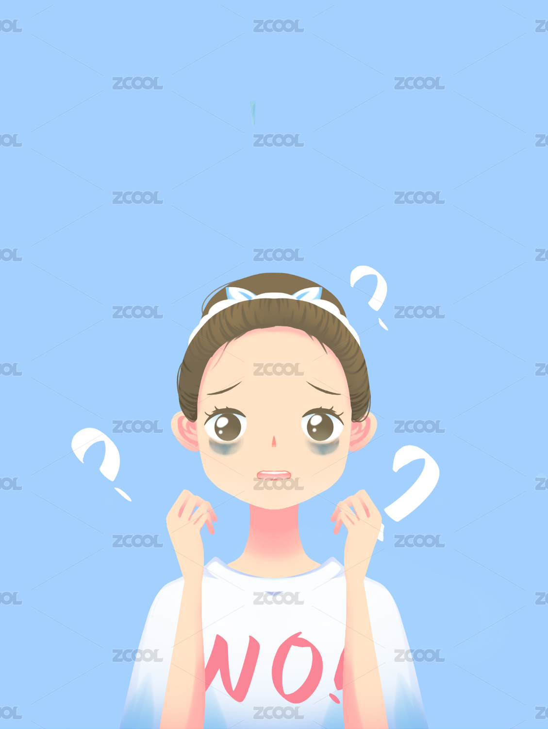 女孩眼部長(zhǎng)黑眼圈 表情痛苦困惑 卡通人物