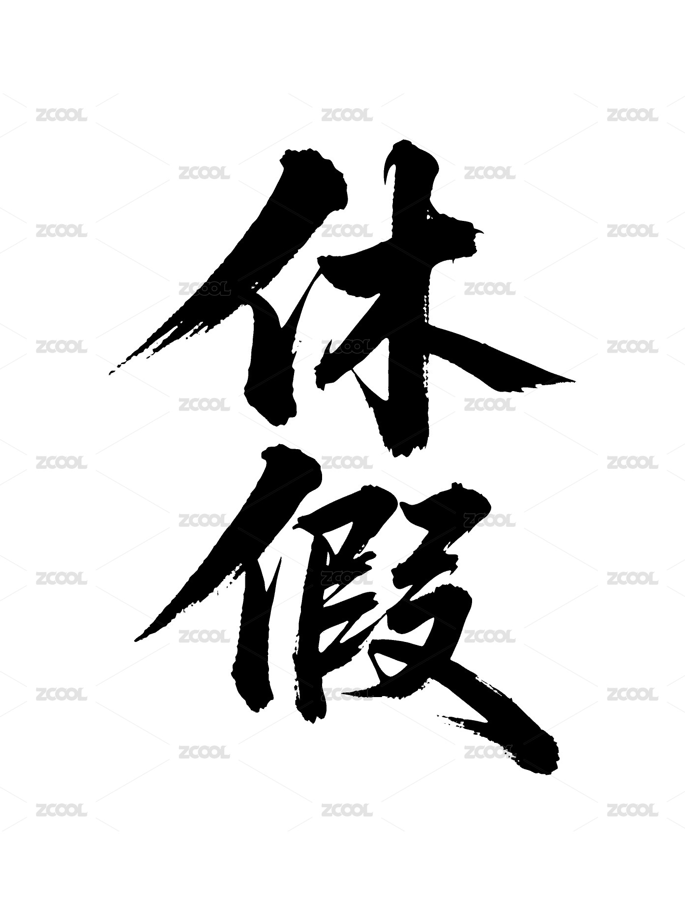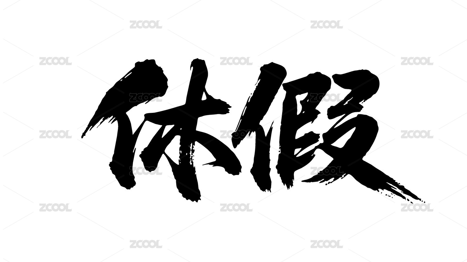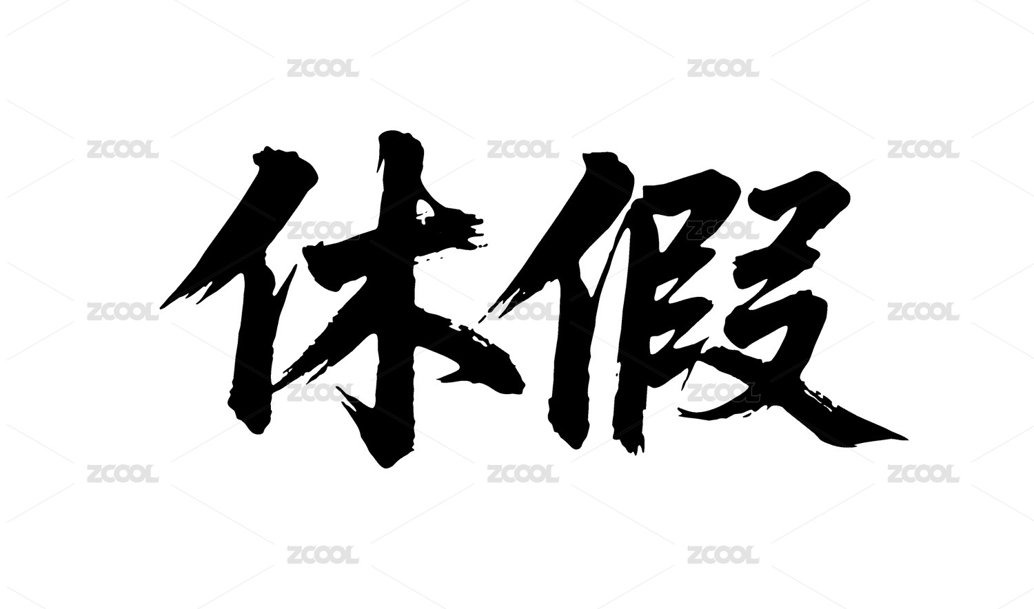 休假矢量書法手寫毛筆字