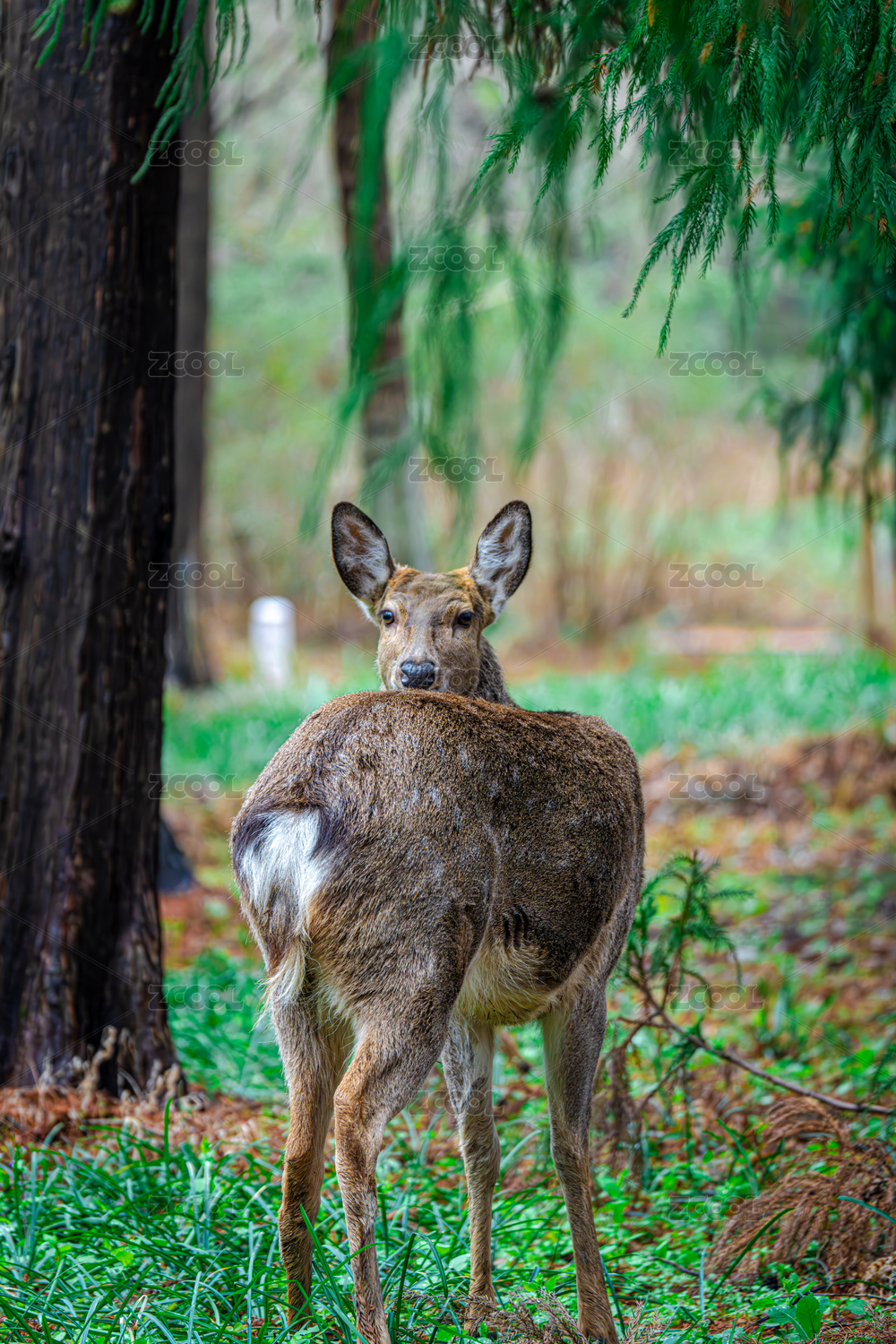 在野外很多顆樹(shù)前自己擁抱自己的傷感女孩