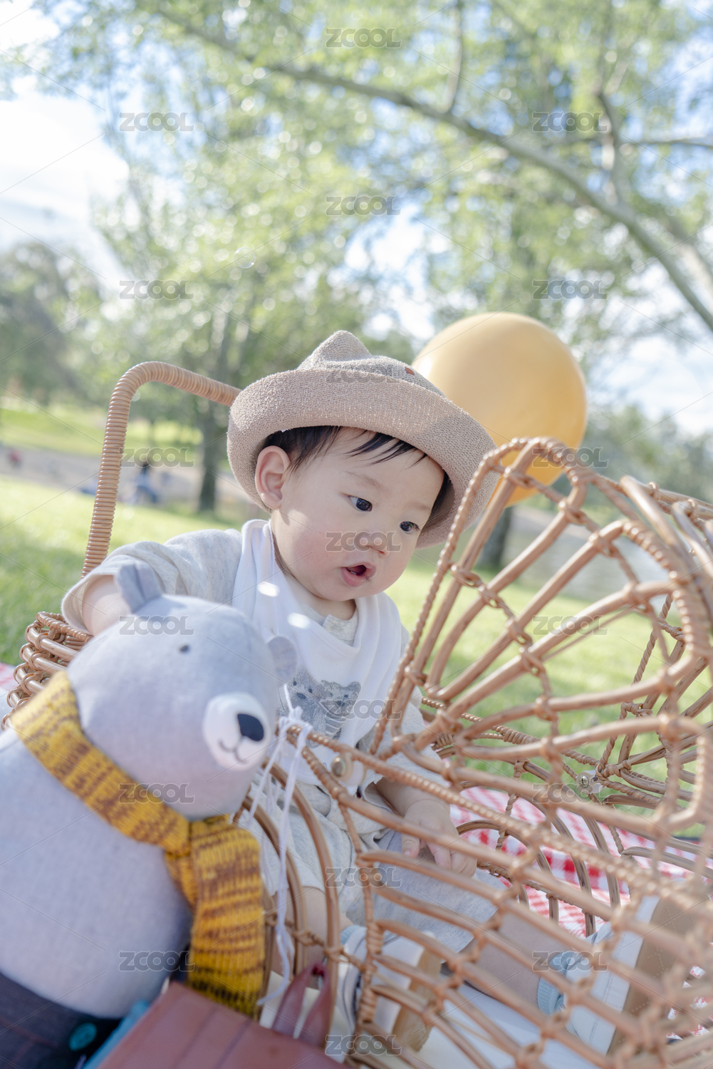 野外藤車(chē)?yán)锢瓪馇虻膵雰号c布偶小熊
